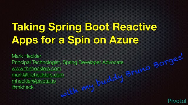 Mark Heckler Principal Technologist, Spring Developer Advocate www.thehecklers.com [email protected][email protected] @mkheck with my buddy Bruno Borges!