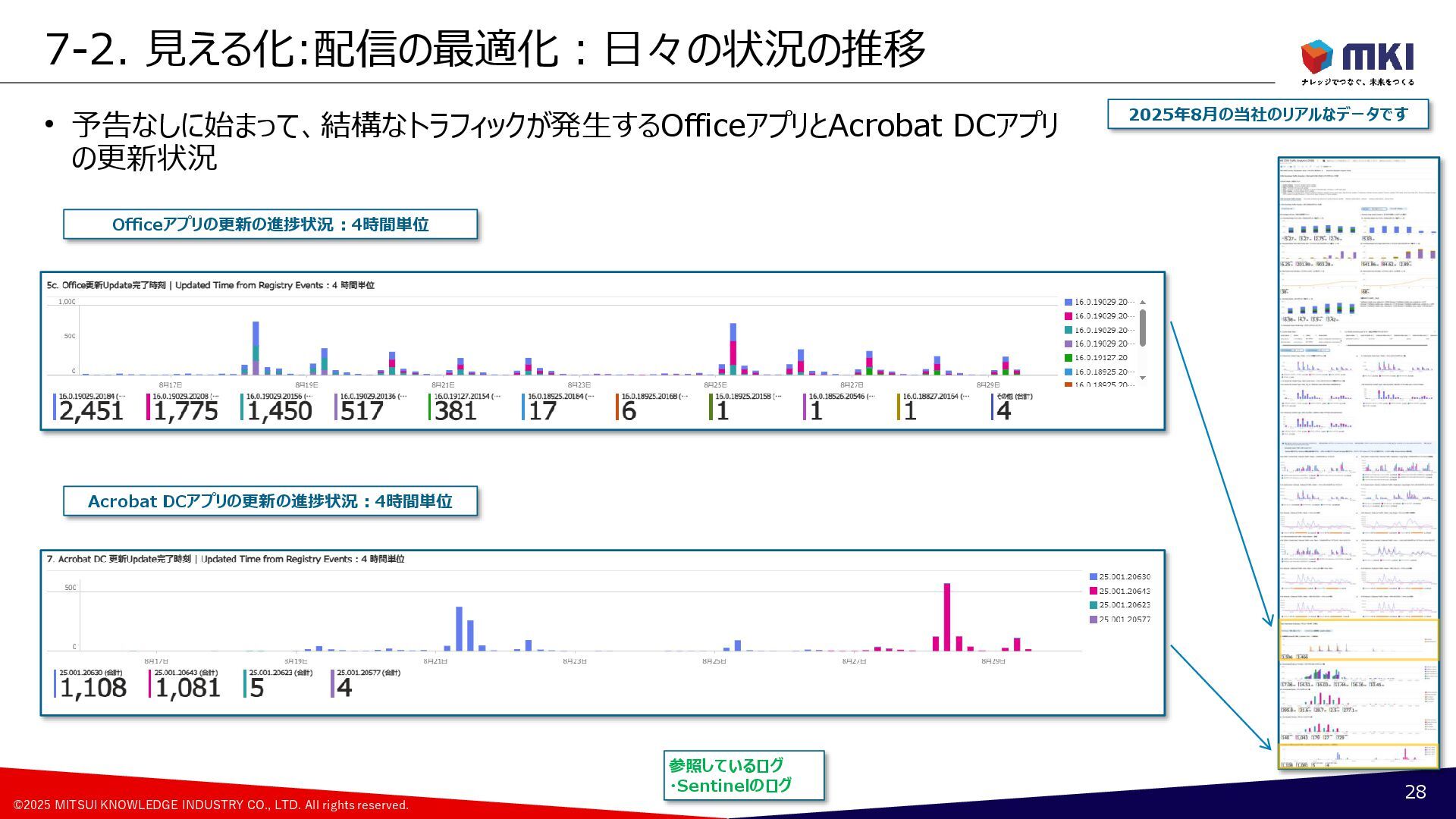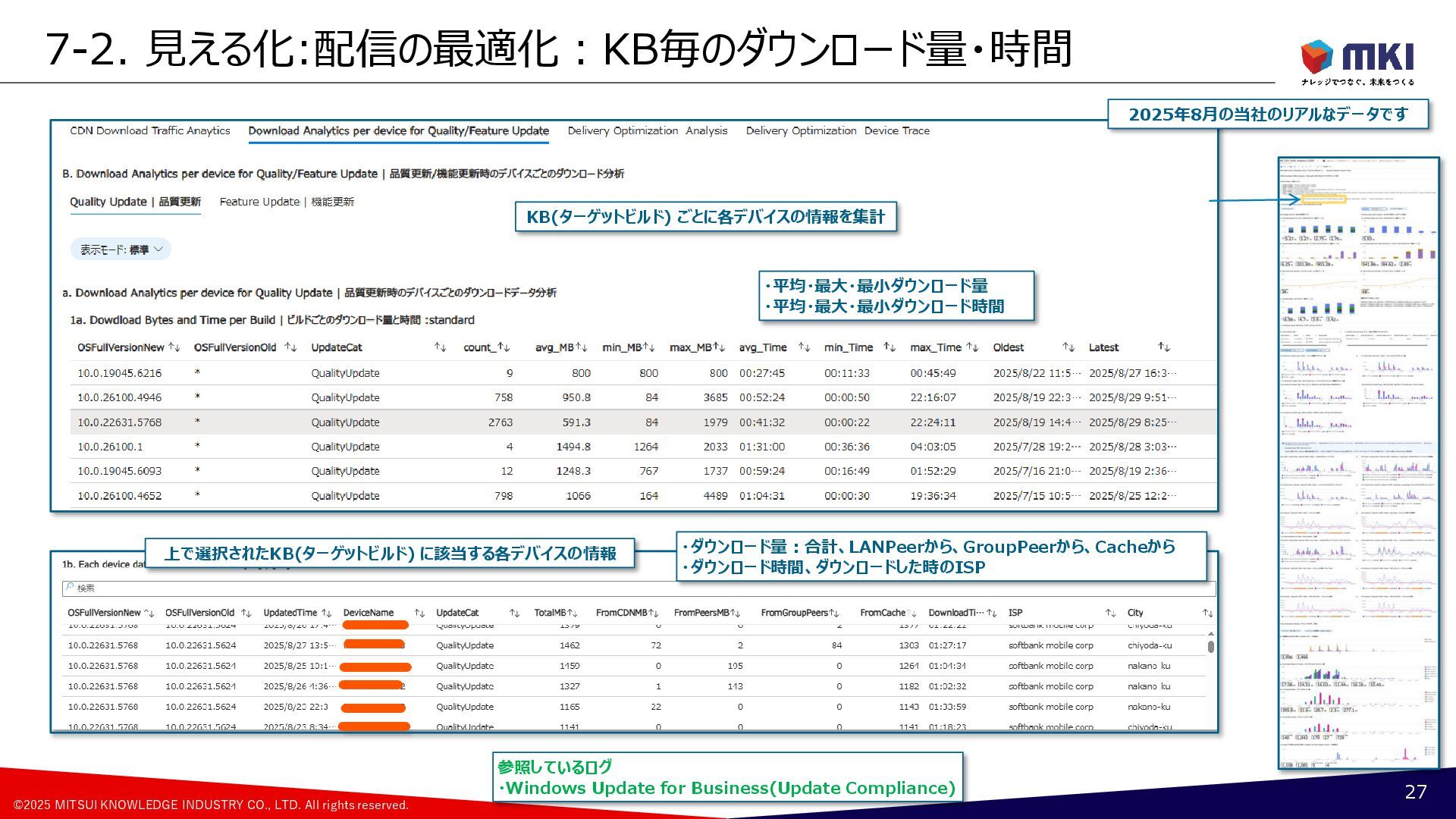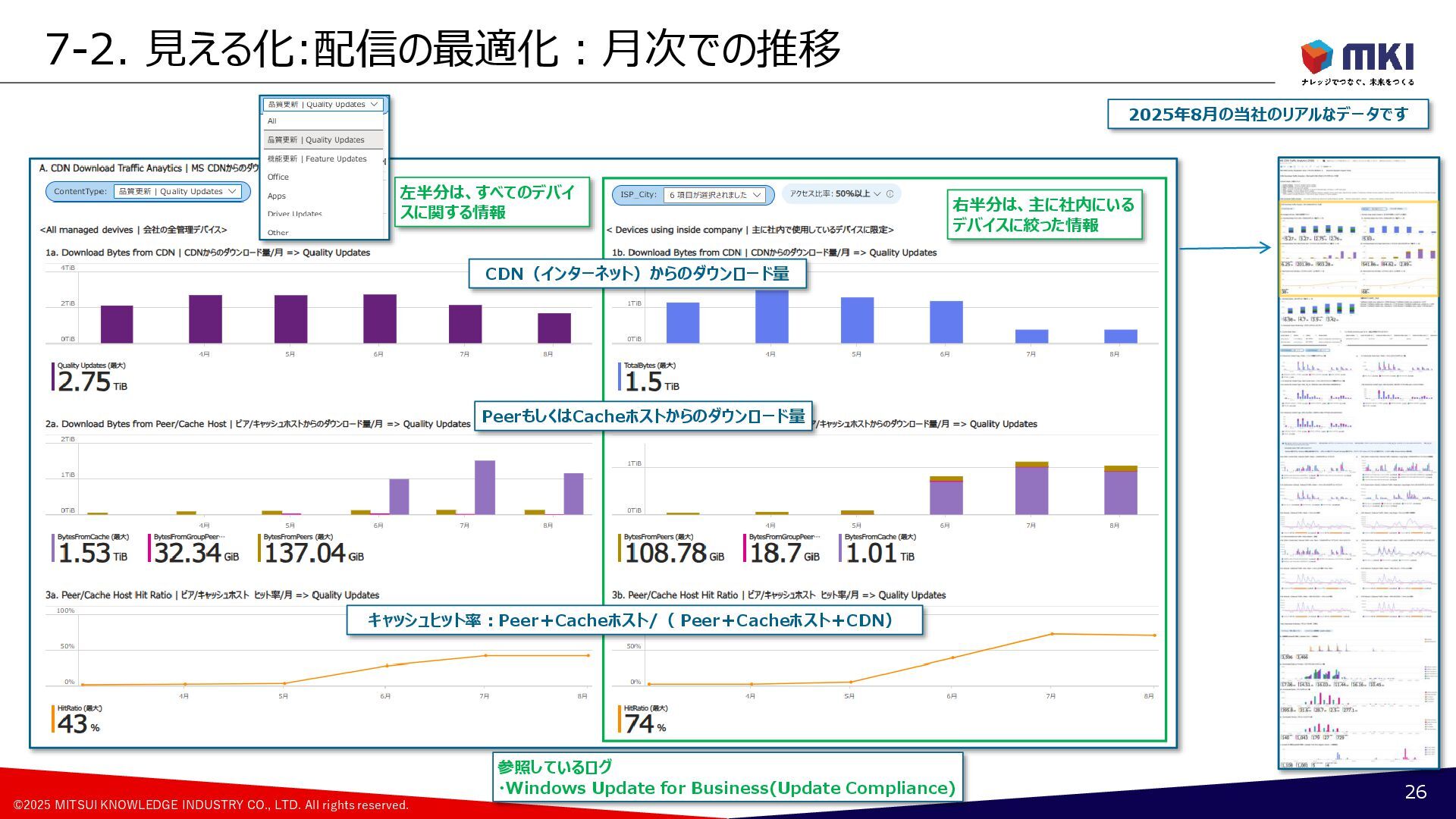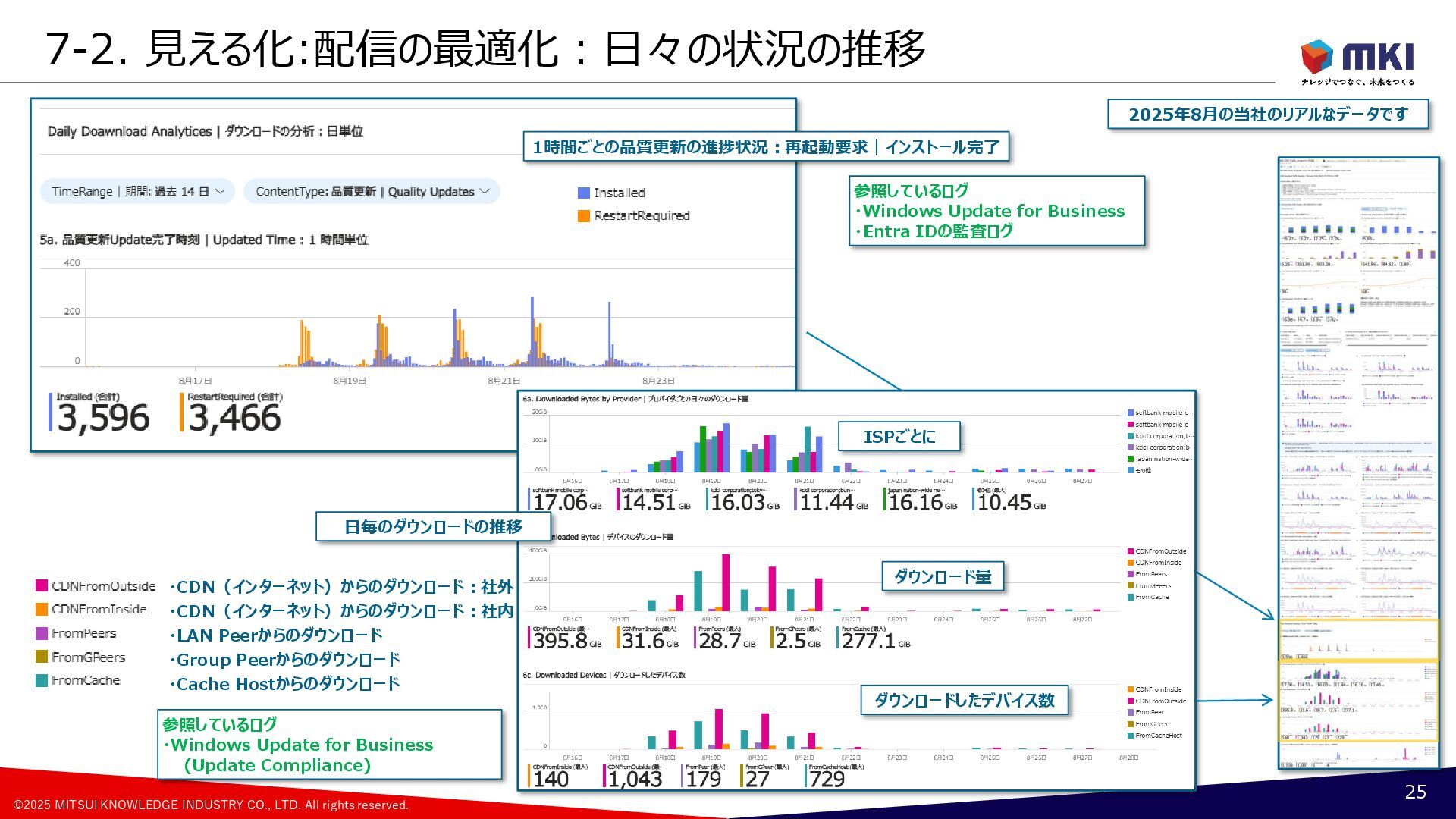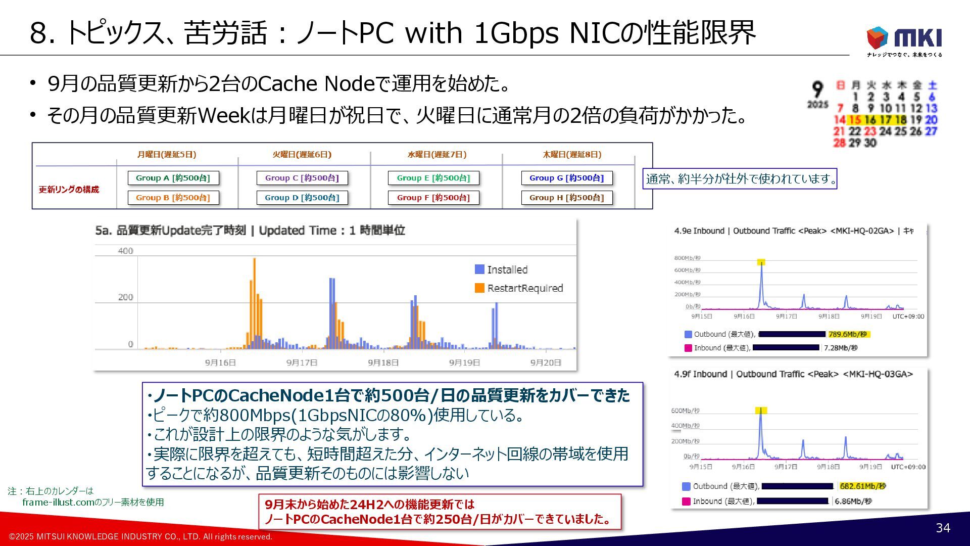 MCC導入:配信の最適化のポリシー:Cache Hostの設定の変遷 17 Group A [約500台] Group B [約500台] Group C [約500台] Group D [約500台] Group F [約500台] Group G [約500台] Group H [約500台] Group E [約500台] 月曜日(遅延5日) 火曜日(遅延6日) 水曜日(遅延7日) 木曜日(遅延8日) 更新リングの構成 1号機PP版 2号機PP版 3号機PP版 6月 Group A Group B Group C Group D Group G Group H Group F Group E 1号機PP版 2号機PP版 3号機PP版 7月 ②Group A ②Group B ①Group A ①Group B ②Group C ②Group D ①Group C ①Group D ②Group F ②Group E ①Group F ①Group E ②Group G ②Group H ①Group G ①Group H 1号機PP版 2号機GA版 3号機GA版 8月 ②Group A ②Group B ①Group A ①Group B ①Group C ①Group D ②Group F ②Group E ①Group F ①Group E ②Group G ②Group H ①Group G ①Group H ②Group C ②Group D 1号機PP版 2号機GA版 3号機GA版 9月~ ②Group A ②Group B ①Group A ①Group B ①Group C ①Group D ②Group F ②Group E ①Group F ①Group E ②Group G ②Group H ①Group G ①Group H ②Group C ②Group D