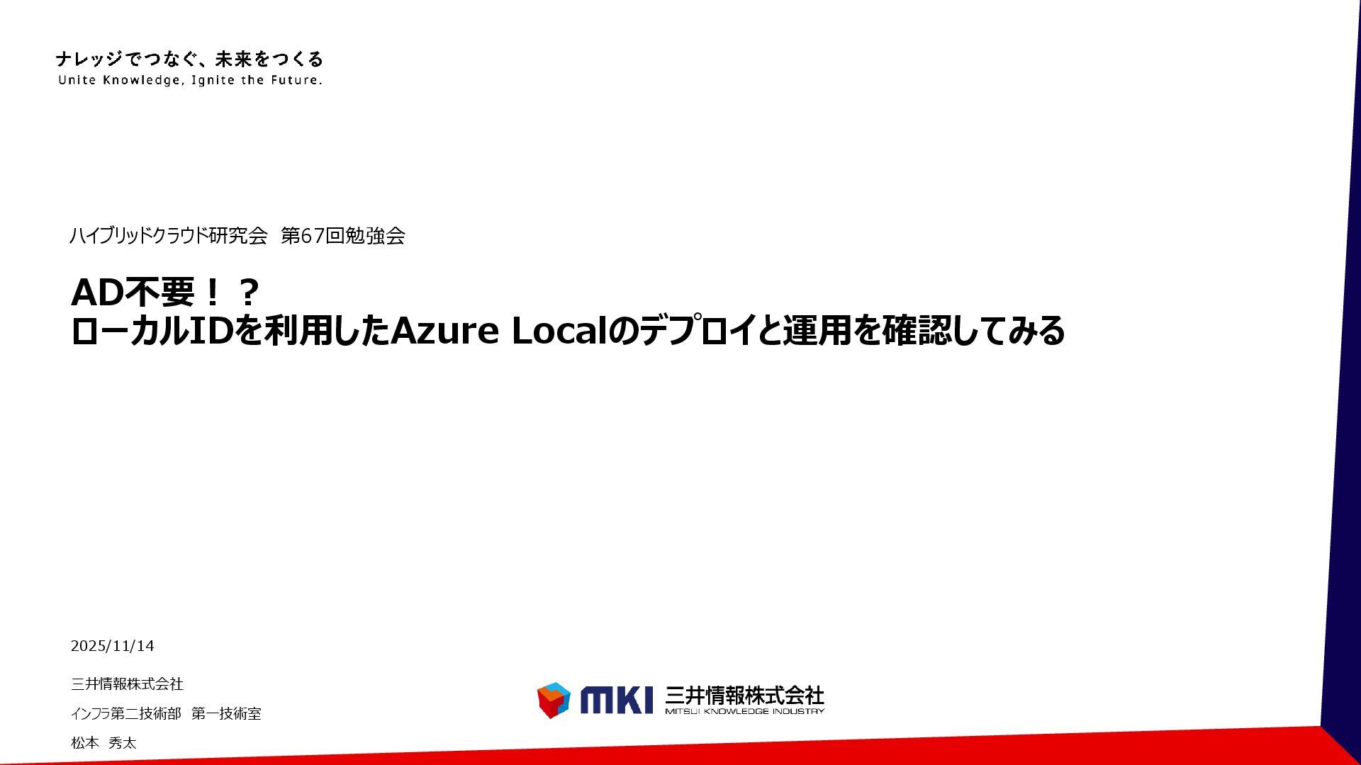 ハイブリッドクラウド研究会第67回勉強会_三井情報(ローカルIDを利用したAzure Localのデプロイと運用を確認してみる)