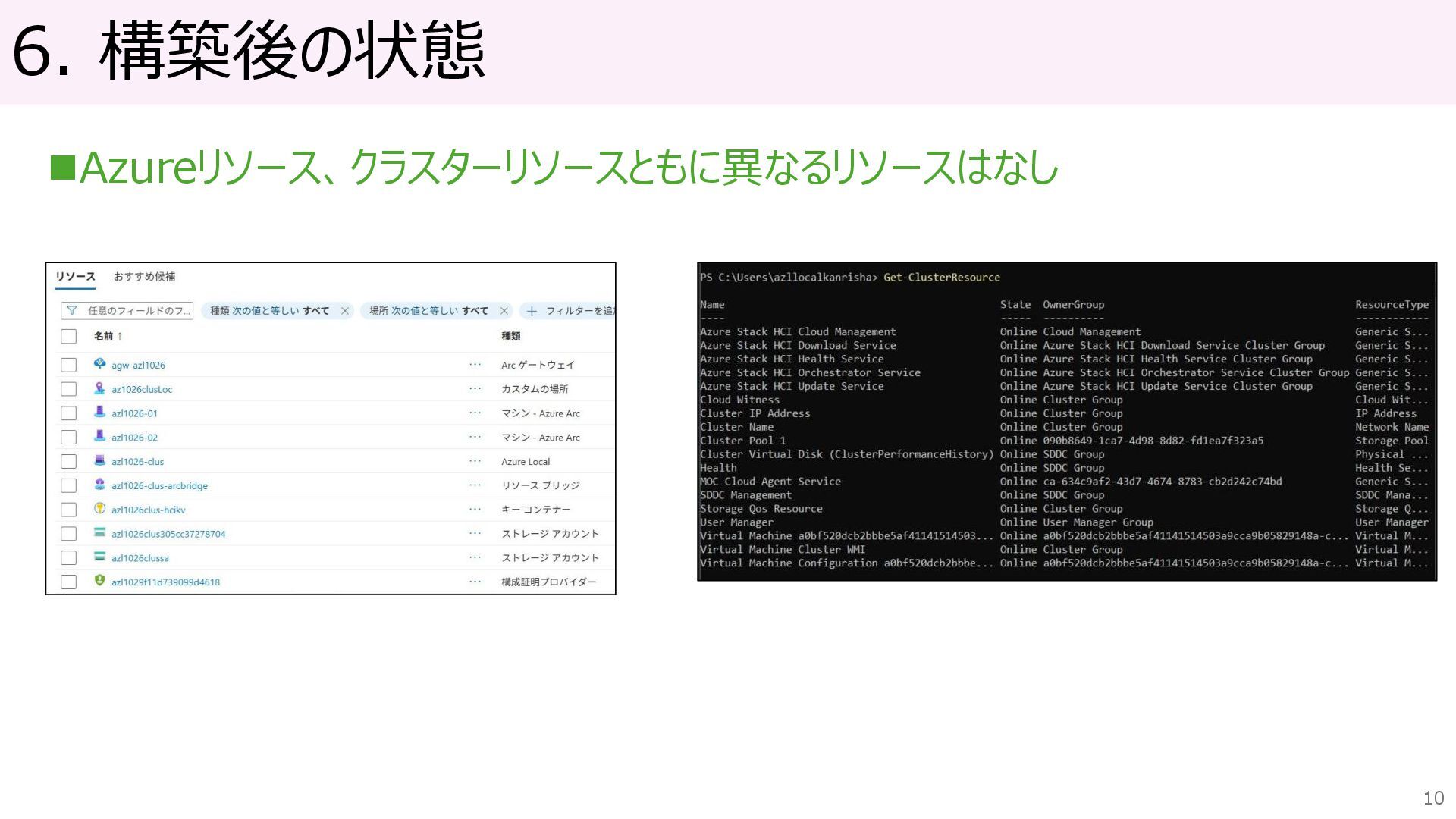6. 構築後の状態 10 ◼Azureリソース、クラスターリソースともに異なるリソースはなし