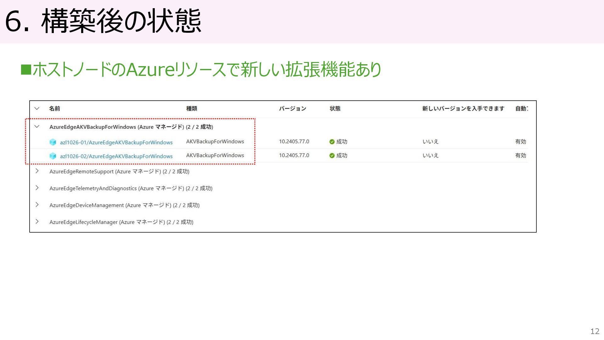 6. 構築後の状態 12 ◼ホストノードのAzureリソースで新しい拡張機能あり
