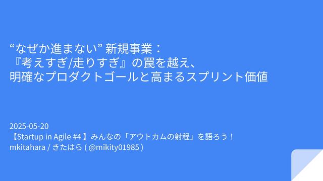 2025-05-20【Startup in Agile #4 】みんなの「アウトカムの射程」を語ろう! https://startup-in-agile.connpass.com/event/349933/