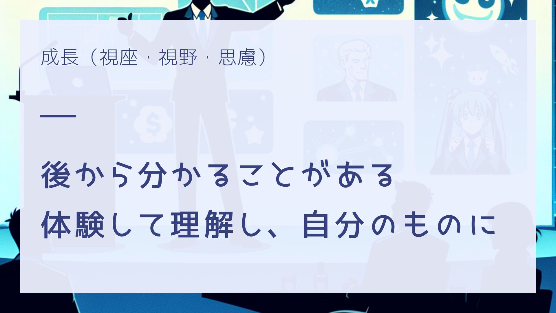 成長(視座・視野・思慮) 後から分かることがある 体験して理解し、自分のものに