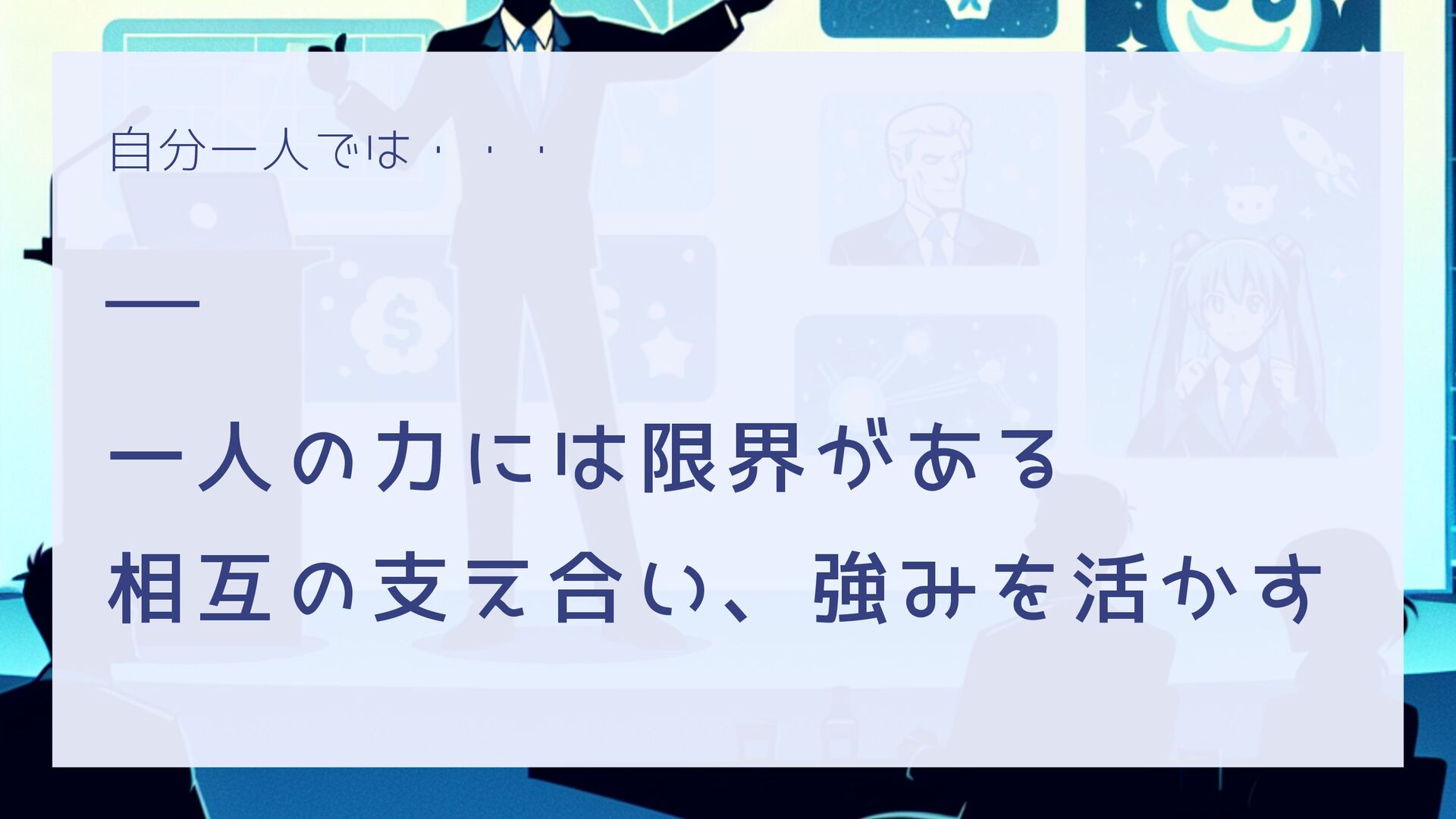 自分一人では・・・ 一人の力には限界がある 相互の支え合い、強みを活かす