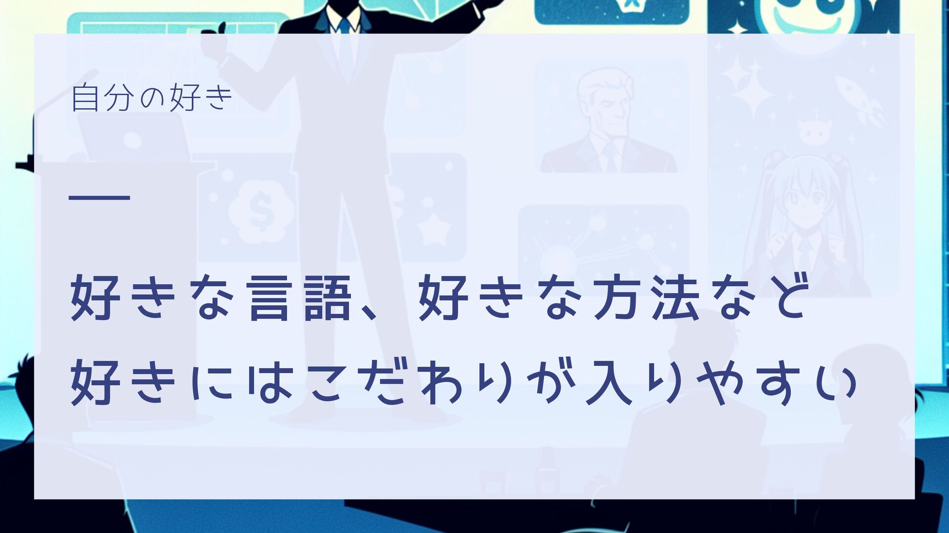 自分の好き 好きな言語、好きな方法など 好きにはこだわりが入りやすい