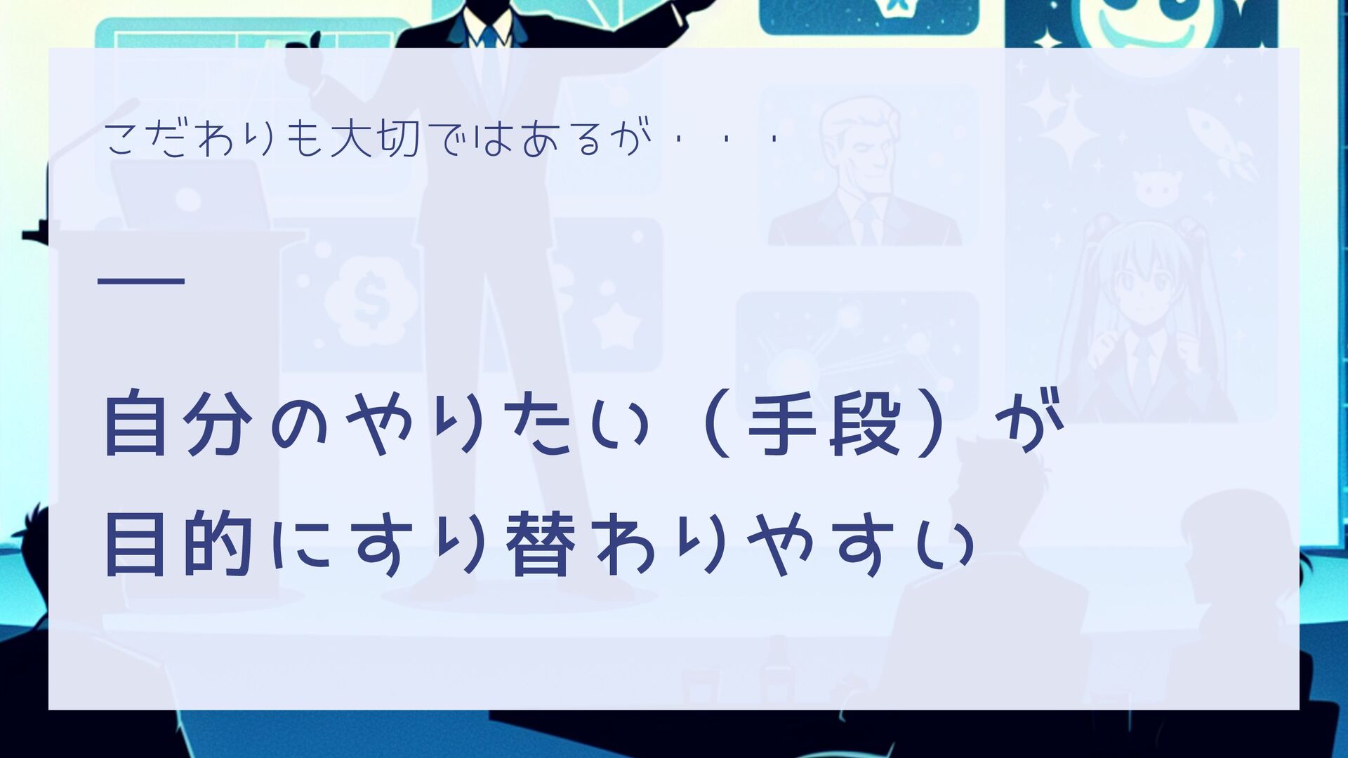 こだわりも大切ではあるが・・・ 自分のやりたい(手段)が 目的にすり替わりやすい