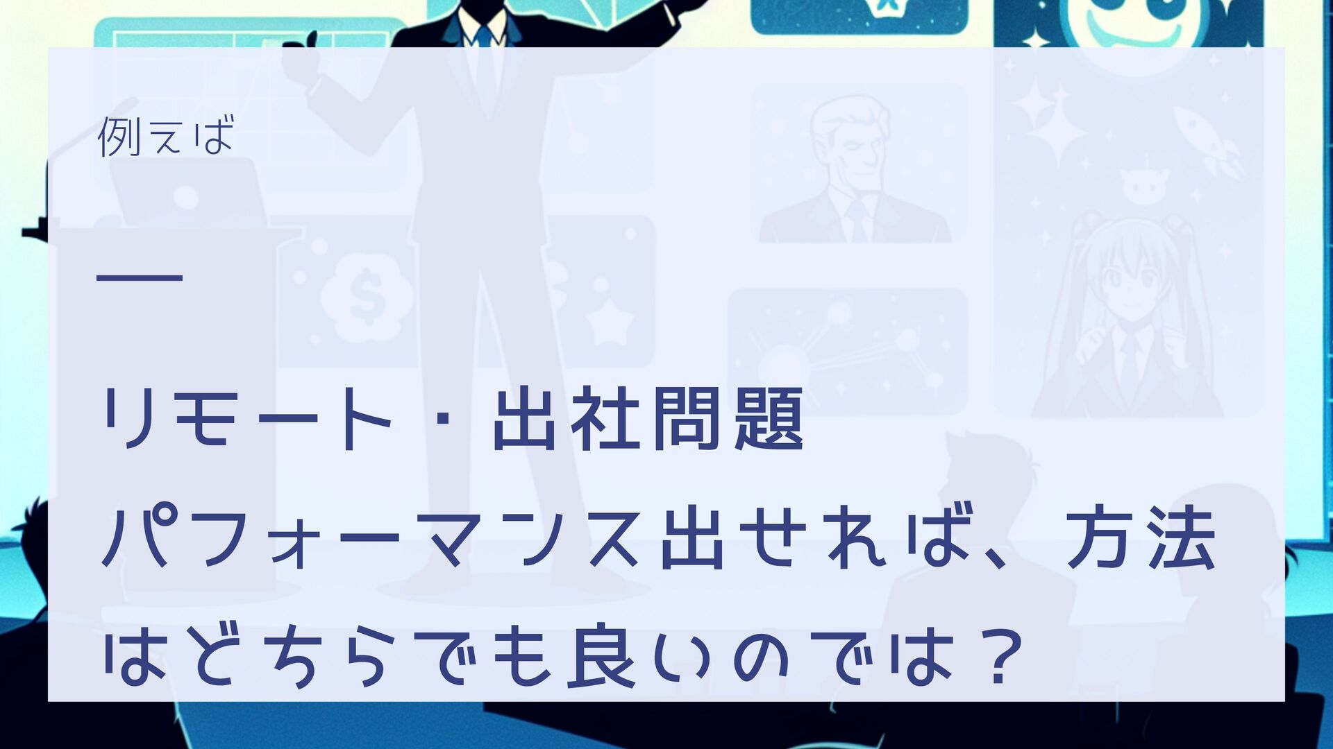 例えば リモート・出社問題 パフォーマンス出せれば、方法 はどちらでも良いのでは?