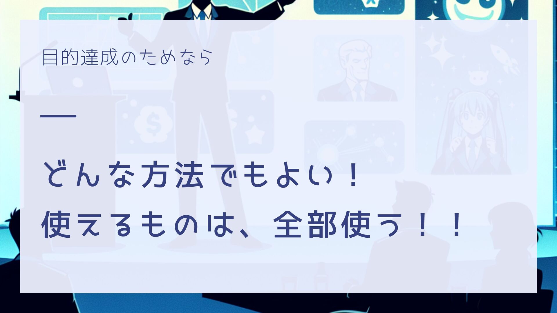 目的達成のためなら どんな方法でもよい! 使えるものは、全部使う!!