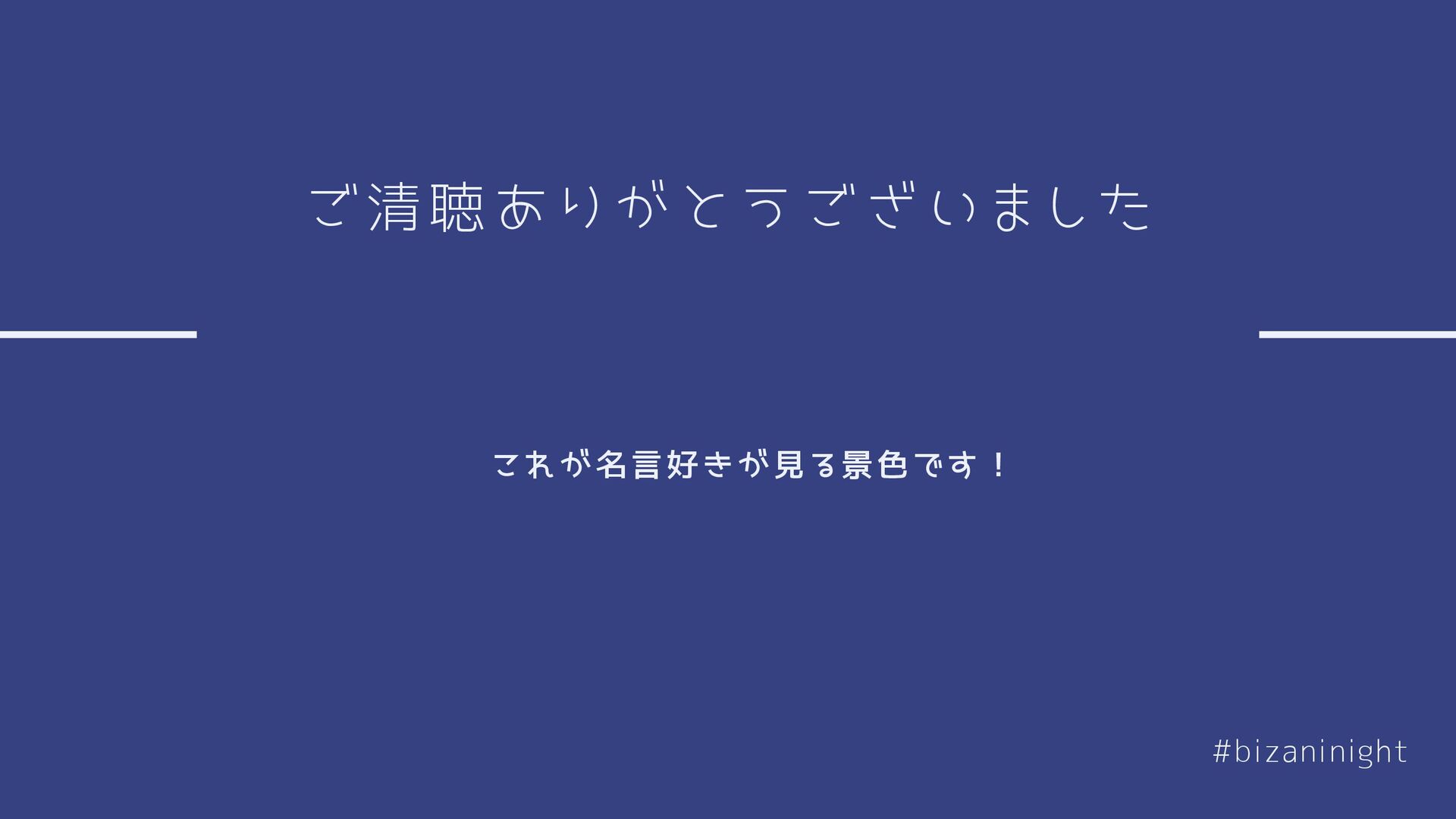 ご清聴ありがとうございました #bizaninight これが名言好きが見る景色です!