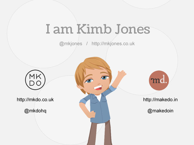 I am Kimb Jones http://makedo.in @makedoin http://mkdo.co.uk @mkdohq @mkjones /