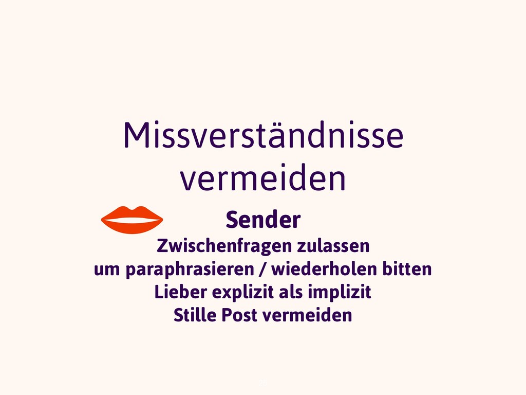In dieser Session sprechen wir über Ziele der Kommunikation und welche Mittel uns konkret helfen können. Bei Bedarf unterfüttern wir das mit Modellen aus der Kommunikationspsychologie.