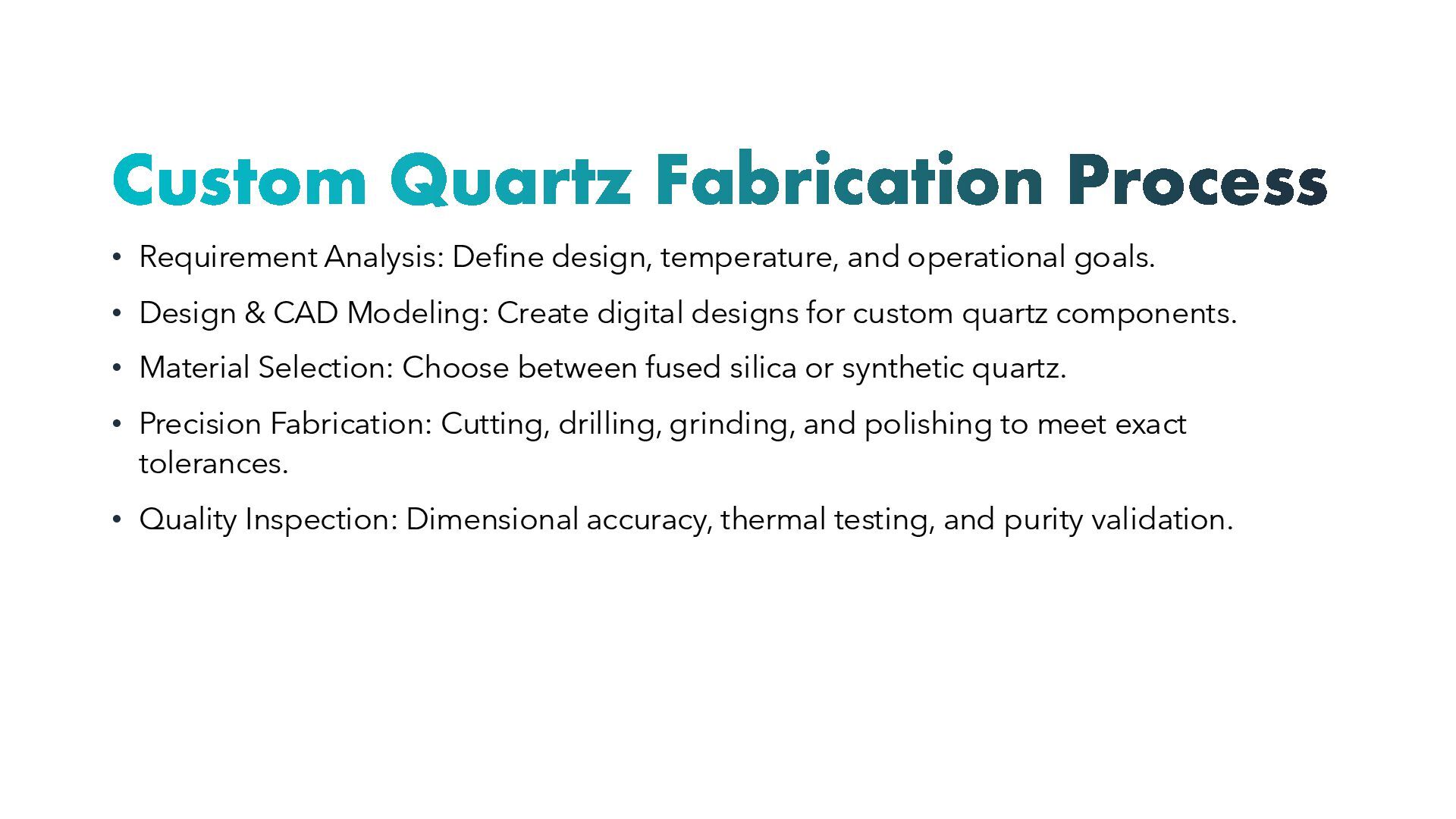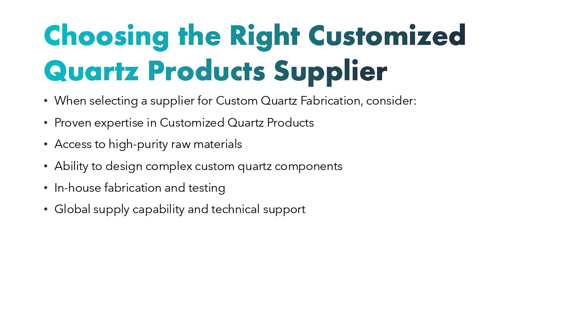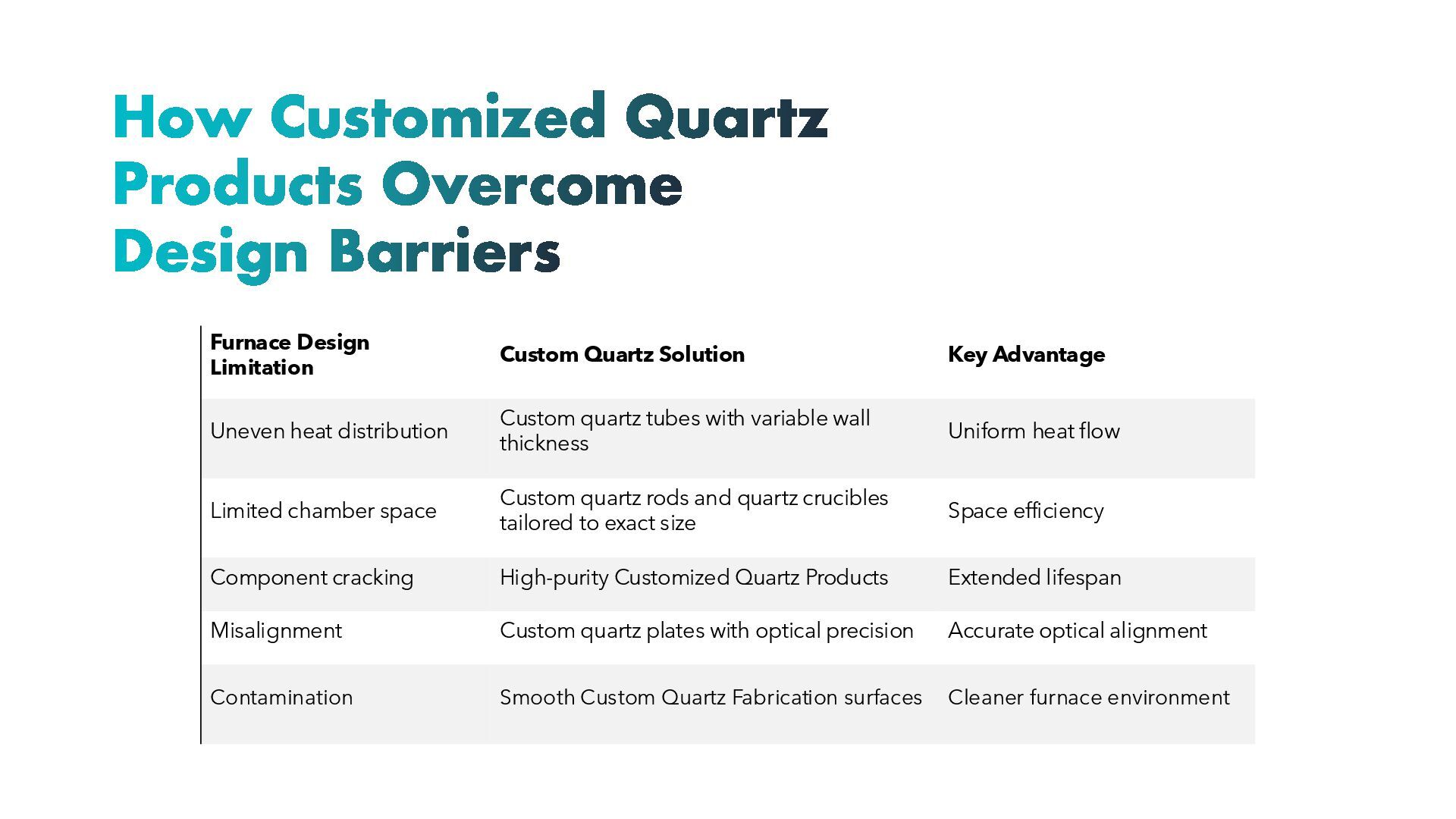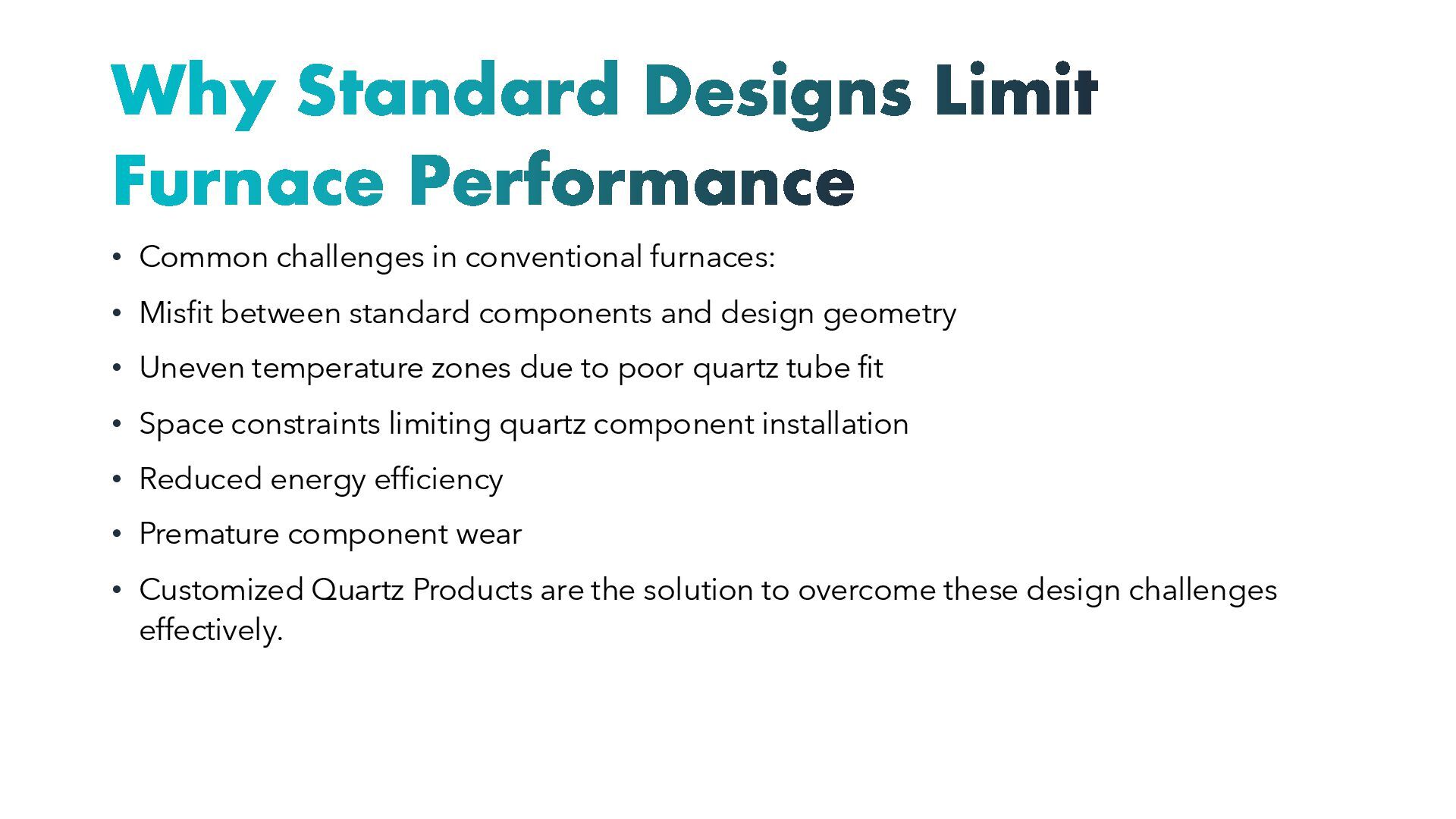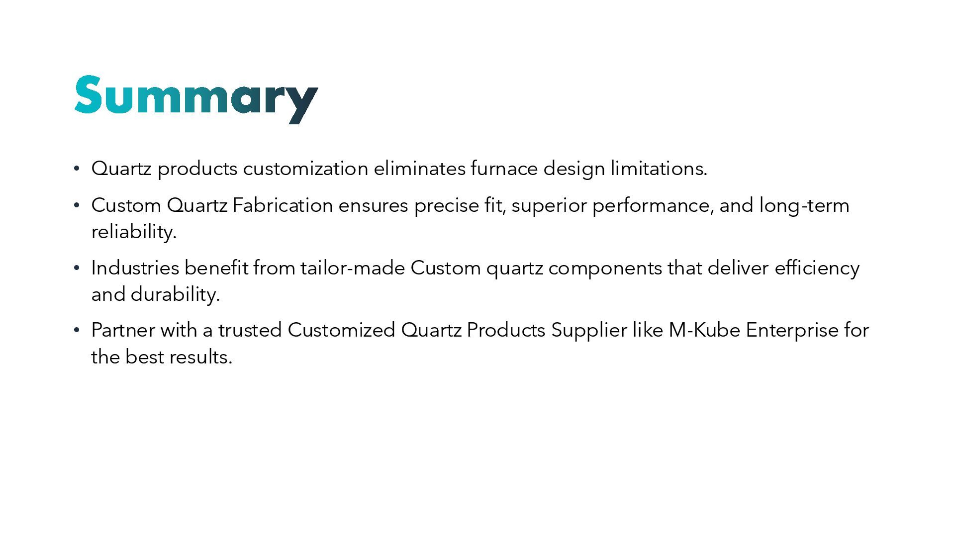 This presentation examines how customized quartz components overcome design limitations in high-temperature furnaces. It highlights precision-engineered quartz tubes, liners, and crucibles that improve thermal uniformity, chemical resistance, and optical clarity, enabling advanced performance in semiconductor, glass, and metallurgical applications.
