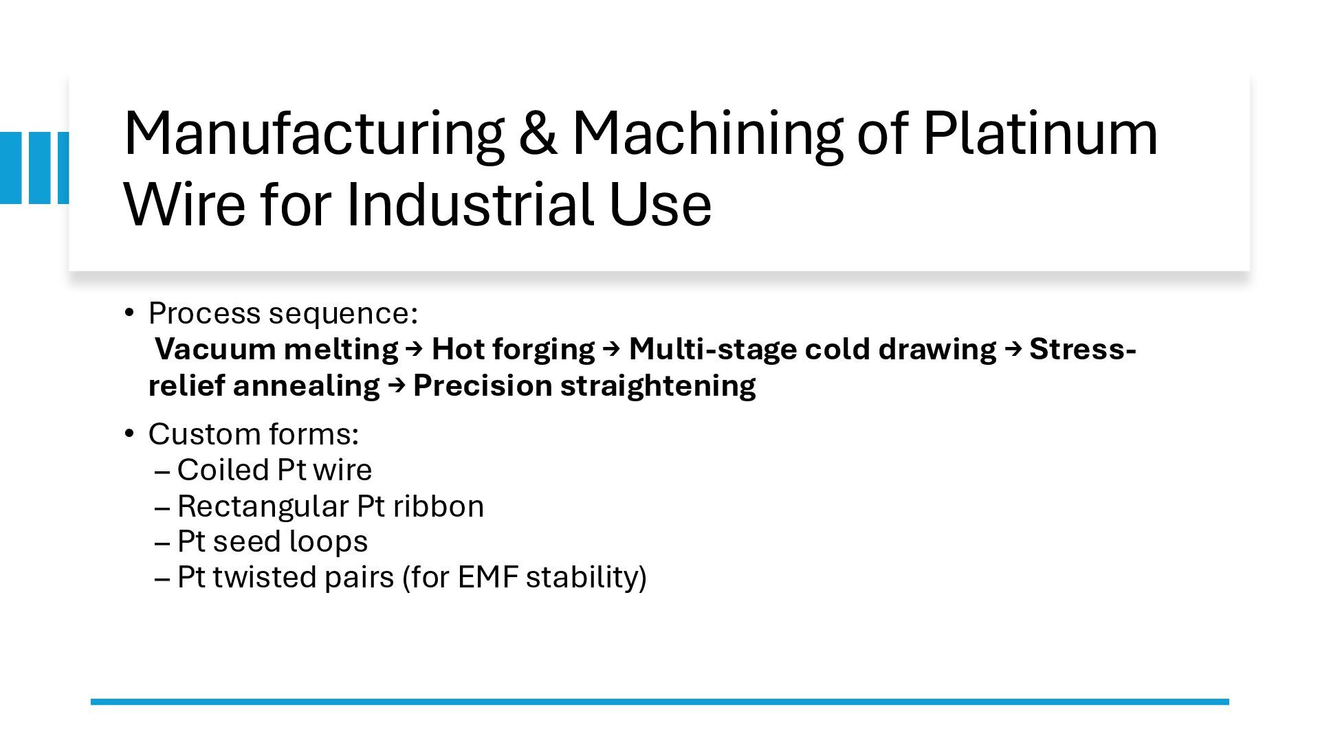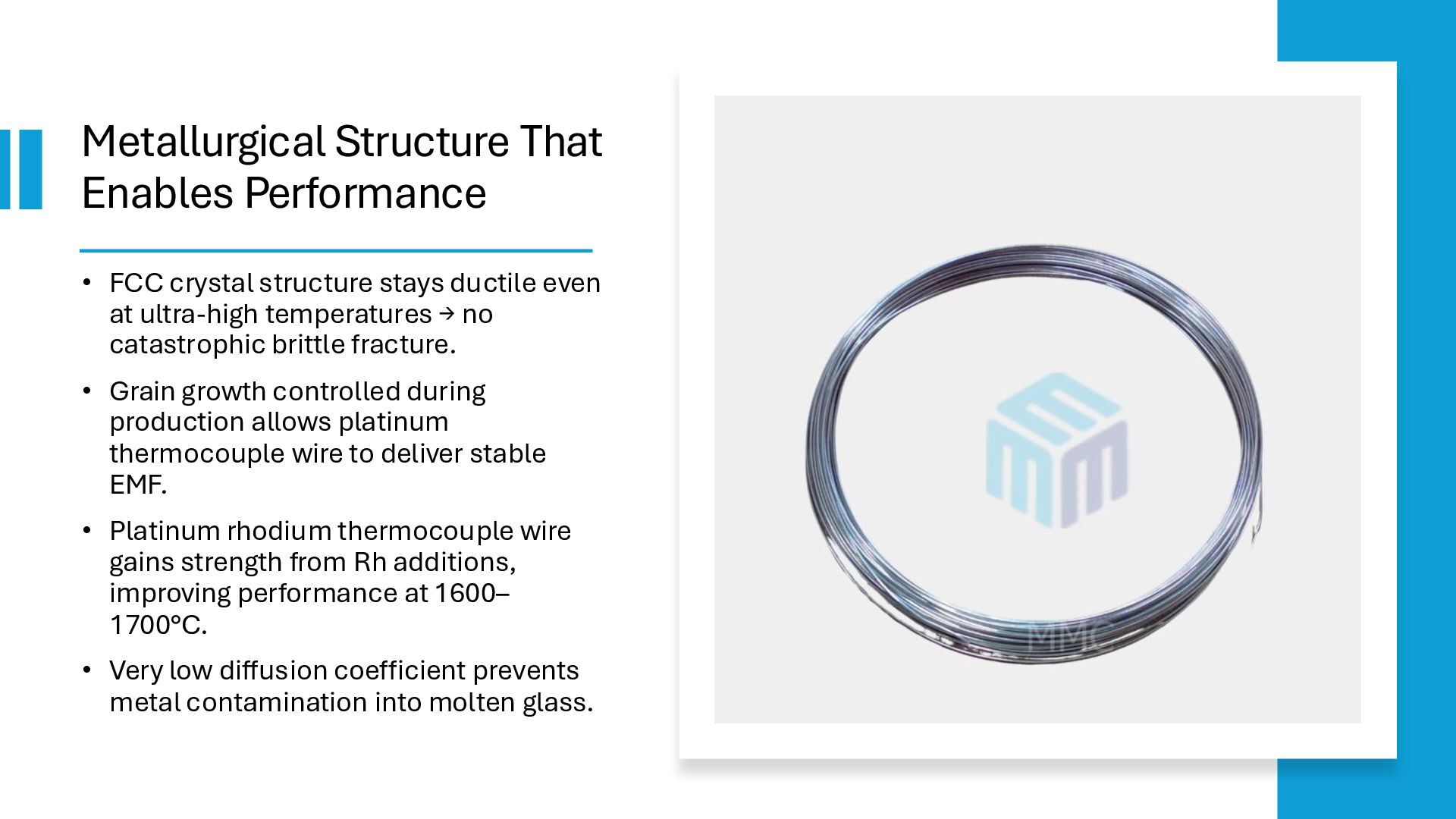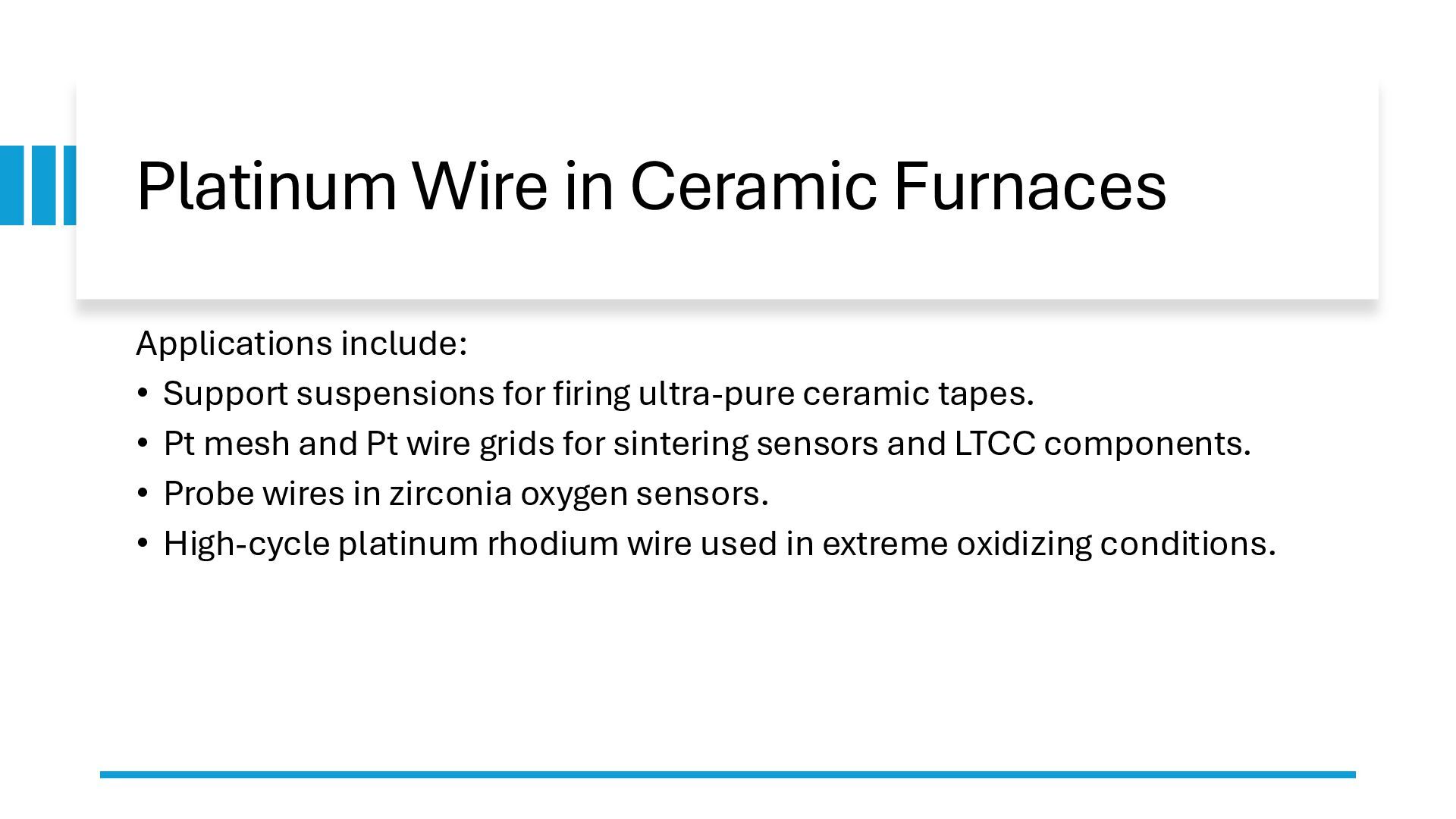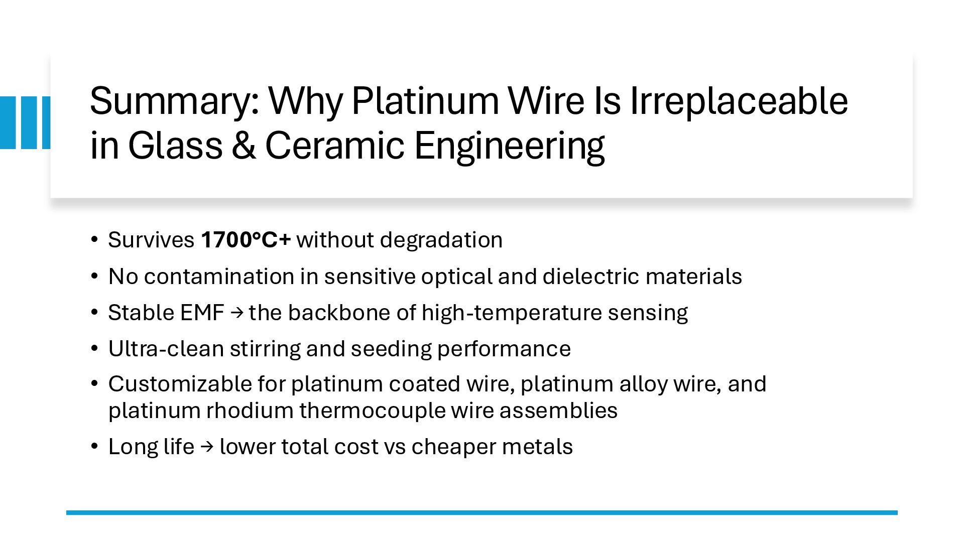 Understand the critical role of platinum wire in glass and ceramic processing. This presentation explains its use in high-temperature stirring, crystal seeding, and precise temperature sensing, highlighting purity, oxidation resistance, and reliability in aggressive thermal environments.