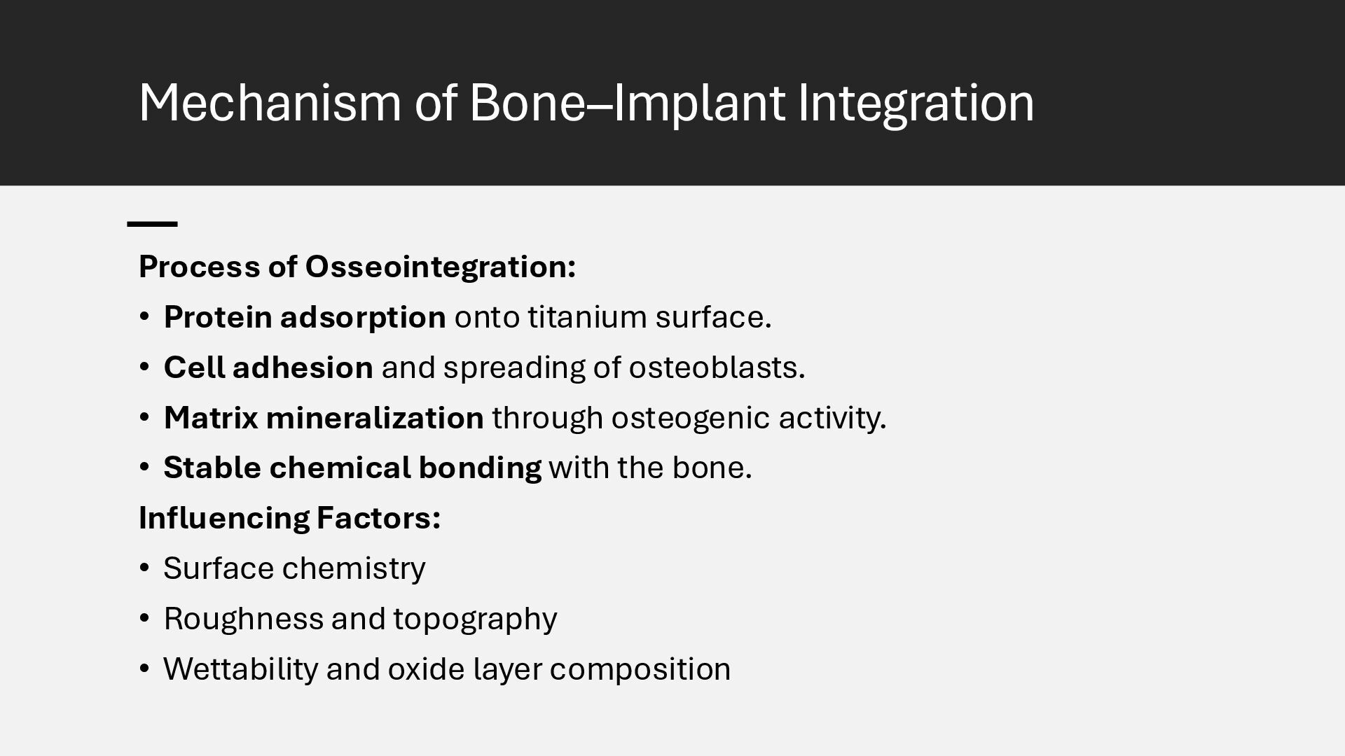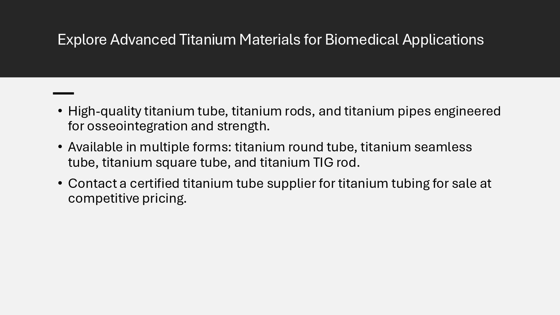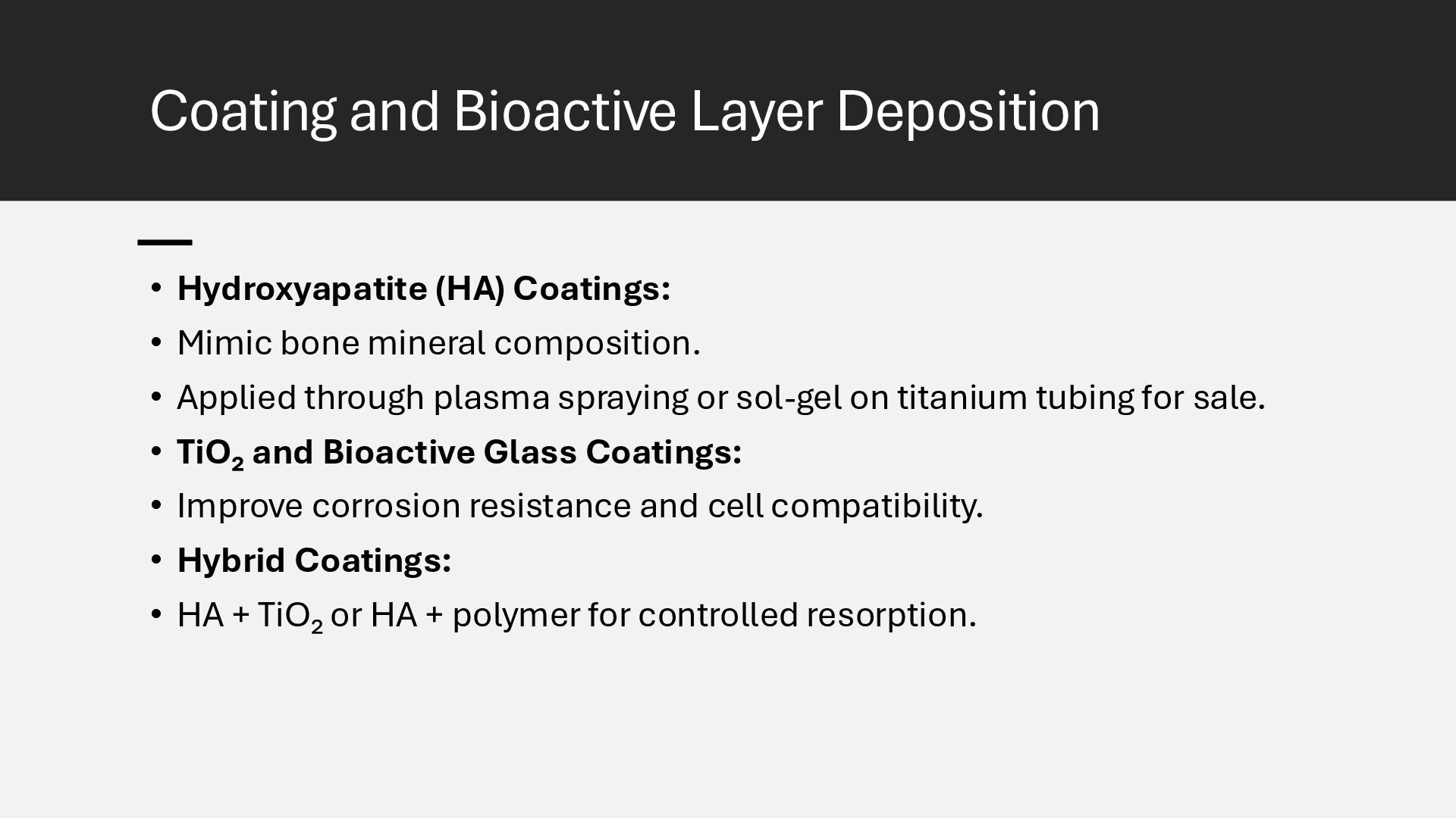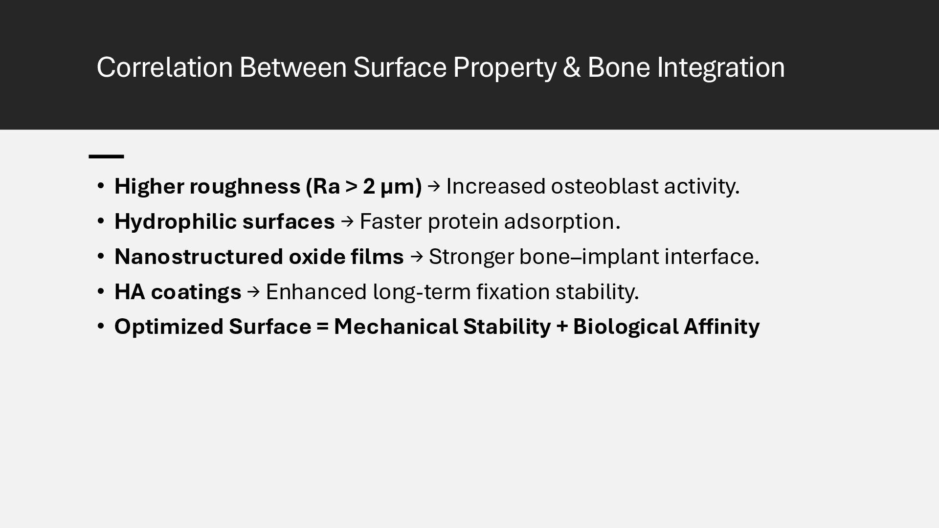 Learn how advanced surface modification techniques on titanium rods improve bone integration in orthopedic implants. This presentation covers micro-texturing, coatings, and bioactive layers that boost osseointegration, stability, and long-term implant performance.