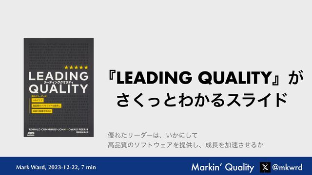 ʰLEADING QUALITYʱ͕ ͬ͘͞ͱΘ͔ΔεϥΠυ Mark Ward, 2023-12-22, 7 min @mkwrd ༏ΕͨϦʔμʔɺ͍͔ʹͯ͠
