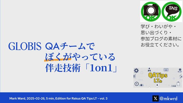 LT - vol. 3 @mkwrd QAチームで ぼくがやっている 伴⾛技術「 1 on 1 」