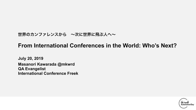 Written in Japanese 20/July/2019 E2E Test Automation DayでLTセッションとして話した資料です。 世界のカンファレンスからシリーズの総まとめ的な立ち位置です。
