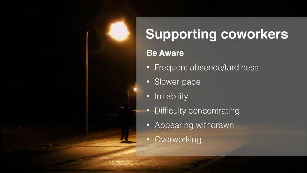 Then we will move on to talk about how we can all work together to build a workplace environment that supports all of us, and the problems that we deal with. Discover some techniques to help you communicate with people who are suffering from mental illness. And finally talk about some work policies that you can implement, or suggest your employer implement, to balance out the scales for those suffering from these illnesses.