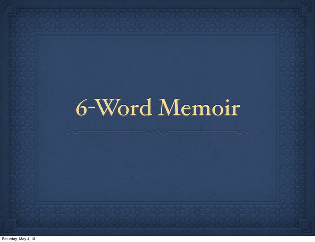 yes yes Thursday, April 25, 13 Saturday, May 4, 13