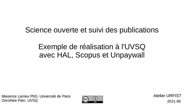 Présentation réalisée dans le cadre de l'atelier URFIST "Mettre en œuvre le suivi des publications scientifiques de son établissement ", le 28 06 2021.