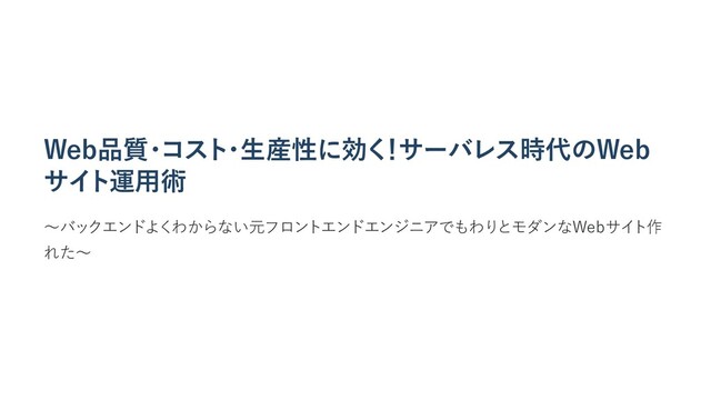 フロントエンドの知識だけでもAWS AmplifyでJamstackアーキテクチャなWebサイトがかんたんに構築できたので、ノウハウやポイントを事例を通して話しました。
