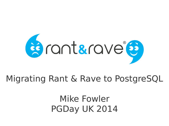 Recently we have started to find that MySQL is holding us back when it comes to our vision of growing a sustainable and scalable database. This talk will discuss the process Rant & Rave followed in order to migrate our core database. By discussing some of the challenges we overcame from mapping datatypes to differences in syntax it is hoped that other MySQL users will be better equipped to make the move to PostgreSQL.