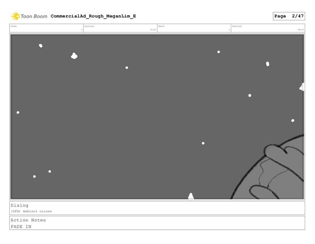 Heavy and fast breathing Action Notes Astronaut is clutching head, spinning around (CAM) Pan right and truck in CommercialAd_Rough_MeganLim_E Page 7/47