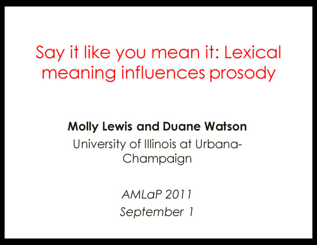 picture mentioned in previously heard sentence • Measure: Reaction time to response • Result: Matched faster than mismatched • Suggests: facilitated processing when meaning congruent with prosodic form Evidence in comprehension