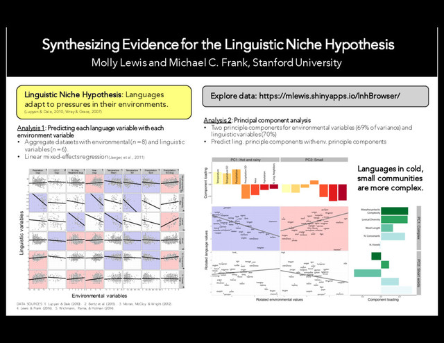 (Lupyan & Dale, 2010; Wray & Grace, 2007). Synthesizing Evidence for the Linguistic Niche Hypothesis Molly Lewis and Michael C. Frank, Stanford University = Analysis 1: Predicting each language variable with each environment variable • Aggregate datasets with environmental (n = 8) and linguistic variables (n = 6). • Linear mixed-effects regression (Jaeger, et al., 2011) Population (log) L2:L1 (log) N. Ling. Neighbors (log) Area (log) Temperature Mean Temperature SD Precipitation Sum Precipitation SD (log) • • • • • • • • • • • • • • • • • • • • • • • • • • • • • • • • • • • • • • • • • • • • • • • • • • • • • • • • • • • • • • • • • • • • • • • • • • • • • • • • • • • • • • • • • • • • • • • • • • • • • • • • • • • • • • • • • • • • • • • • • • • • • • • • • • • • • • • • • • • • • • • • • • • • • • • • • • • • • • • • • • • • • • • • • • • • • • • • • • • • • • • • • • • • • • • • • • • • • • • • • • • • • • • • • • • • • • • • • • • • • • • • • • • • • • • • • • • • • • • • • • • • • • • • • • • • • • • • • • • • • • • • • • • • • • •• • • • • • • • • •• • • • • • • • • • • • • • • • • • • • • • • • • • • • • • • • • • • • • • • • • • • • • • • • • • • • • • • • • • • • • • •• • • • • • • • • • • • • • • • • • • • • • • • • • • • • • • • • • • • • • • • • • • • • • • • • • • • • • • • • • • • • • • • • • • • • • • • • • • • • • • • • • • • • • • • • • • • • • • • • • • • • • • • • • • • • • • • • • • • • • • • • • • • • • • • • • • • • • • • •• • • • • • • • • • • • • • • • • • • • • • • • • • • • • • • • • • • • • • • • • • • • • • • • • • • • • • • • • • • • • • • • • • • • • • • • • • • • • • • • • • • • • • • •• • • • • • • • • • • • • • • • • • • • • • • • • • • • •• • • • • • • • • • • • • • • • • • • • • • • •• • • • • • • • • • • • • • • • • • • • • • • • • • • • • • • • • • • • • • • • • • • • • • • • • • • • • • • • • • • • • • • • • • • • • • • • • • • • • • • • • • • • • • • • • • • •• • • • • • • • • • • • • • • • • • • • • • • • • • • • • • • • • • • • • • • • • • • • • • • • • •• • • • • • • • • • • • • • • • • • • • • • • • • • • • • • • • • • • • • • • • • • • • • • • • • • • • • • • • • • • • • • • • • • • • • • • • • • • • • • • • • • • • • • • • • • • • • • • • • • • • • • • • • • • • • • • • • • • • • • • • • • • • • • • • • • • • • • • • • • • • • • • • • • • • • • • • • • • • • • • • • • • • • • • • • • • • • • • • • • • • • • • • • • • • • • • • • • • • • • • • • • • • • • • • • • • • • • • • • • • • • • • • • • • • • • • • • • • • • • • • • • • • • • • • • • • • • • • • • • • • • • • • • • • • • • • • • • • • • • • • • • • • • • • • • • • • • • • • • • • • • • • • • • • • • • • • • • • • • • • • • • • • • • • • • • • • • • • • • • • • • • • • • • • • • • • • • • • • • • • • • • • • • • • • • • • • •• • • • • • • • • • • • • • • • • • • • • • • • • • •• • • • • • • • • • • • • • • • • • • • • • • • • • • • • • • • • • • • • • • • • • • • • • • • • • • • • • • • • • • • • • • • • • • • • • •• • • • • • • • • • • • • • • • • • •• • • • • • • • • • • • • • • • • • • • • • • • • • • • • • • • • • • • • • • • • • • • • • • • • • • • • • • • •• • • • • • • •• • • • • • • • • • • • • • • • • • • • • • • • • • • • • • • • • • • • • • • • • • • • • • • • •• • • • • • • 
