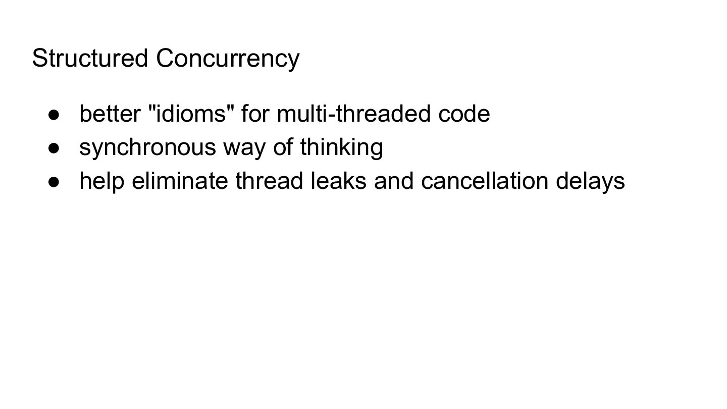 10. Structured Concurrency • better "idioms" for multi-threaded code • synchronous