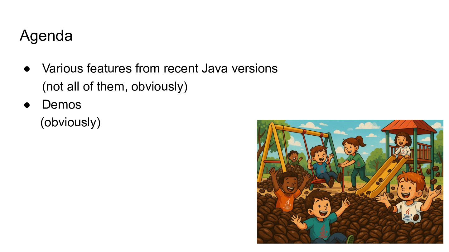 3. Agenda • Various features from recent Java versions (not all