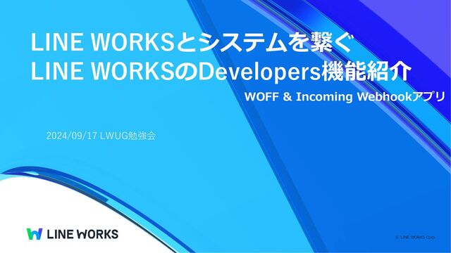 ⓒ LINE WORKS Corp. LINE WORKSとシステムを繋ぐ LINE WORKSのDevelopers機能紹介 2024/09/17 LWUG勉強会