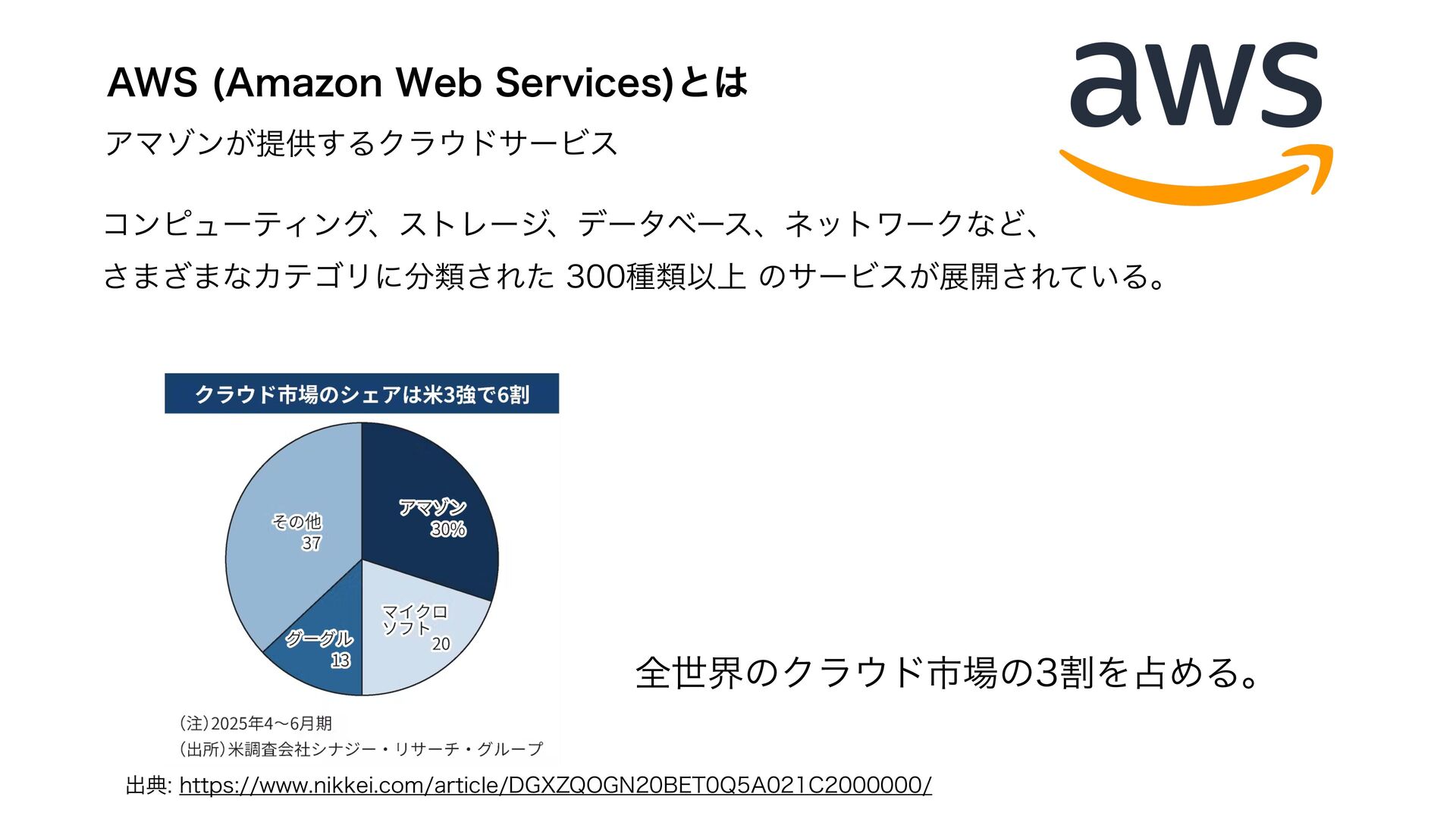 "84 "NB[PO8FC4FSWJDFT ͱ ΞϚκϯ͕ఏڙ͢ΔΫϥυαʔϏε ίϯϐϡʔςΟϯάɺετϨʔδɺσʔλϕʔεɺωοτϫʔΫͳͲɺ ͞·͟·ͳΧςΰϦʹྨ͞ΕͨछྨҎ্ͷαʔϏε͕ల։͞Ε͍ͯΔɻ શੈքͷΫϥυࢢͷׂΛΊΔɻ ग़యIUUQTXXXOJLLFJDPNBSUJDMF%(9;20(/#&52"$