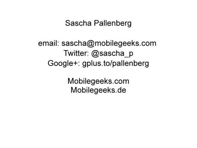 Twitter: @sascha_p Google+: gplus.to/pallenberg Mobilegeeks.com Mobilegeeks.de
