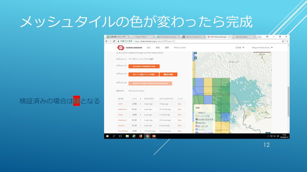 メッシュタイルの色が変わったら完成 検証済みの場合は緑となる 12