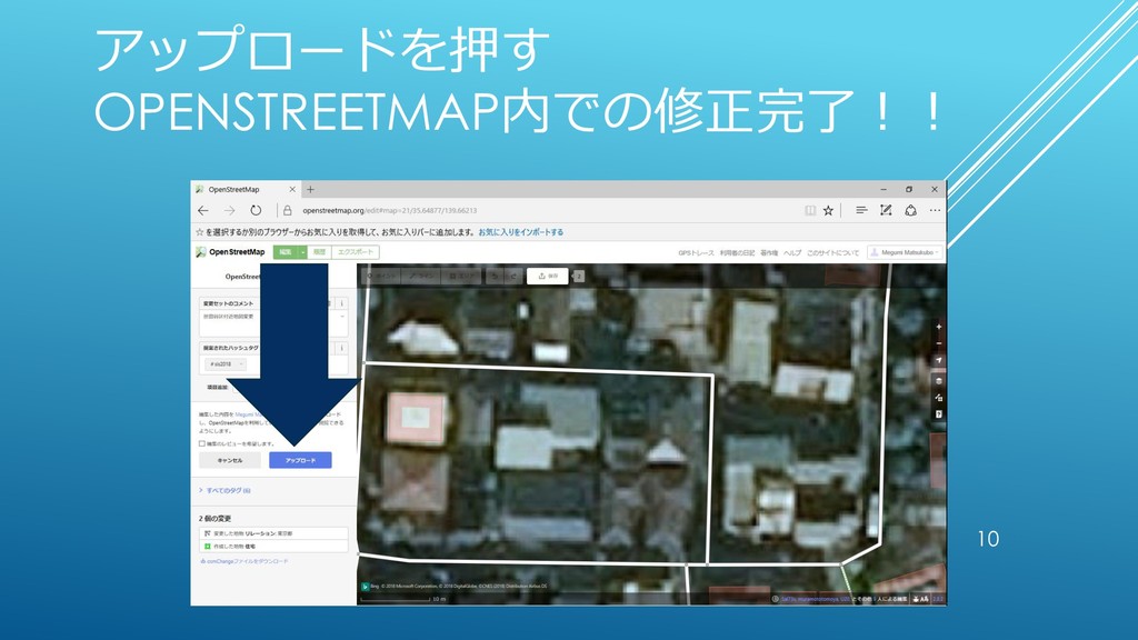 アップロードを押す OPENSTREETMAP内での修正完了!! 10