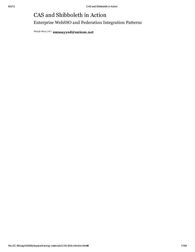The Latest about the Central Authentication Service Monday 10:00am to 10:45am Factoring the Authentication Equation: Integrating Multi-factor Authentication into CAS/Shi Tuesday, 11:00am to 11:45am The Thrill of The Hunt - Tracking and Terminating Single Sign-On Sessions in CAS and Shibb Wednesday, 2:45pm