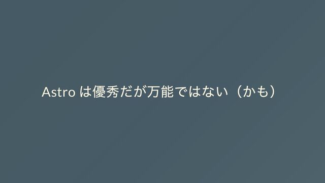 Astro について ref: https://docs.astro.build/ja/concepts/why-astro/ Astro は、コンテンツにフォーカスした高速な Web サイトを構築 するためのオールインワン Web