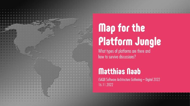 This talk aims to present a map through the platform jungle that allows to identify different types of platforms and, most importantly, to understand their different characteristics and justifications. This also makes it clear how big differences exist and that sometimes the only commonality is that software is involved ... The pain of unresolved terminology discussions will become clear and the map will help everyone attending to leave such useless discussions behind. Every type of platform or platform company can be characterized on the map and all our experiences show that people love to see the clearer picture.