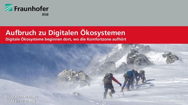 Digitale Ökosysteme und Plattformökonomie sind in aller Munde seit Unternehmen wie AirBnB oder Uber ganze Wirtschaftsdomänen in ziemlich kurzer Zeit drastisch umgestaltet haben. Deutsche und europäische Unternehmen – auch solche, die sich aktuell nicht als Softwareunternehmen fühlen – müssen sich überlegen, wie sie sich positionieren möchten. Wollen sie sich existierenden oder entstehenden Digitalen Ökosystemen anschließen oder erkennen sie eine Chance darin, selbst ein Digitales Ökosystem zu initiieren und zu etablieren? Und wie gelingt dieser Start am besten? Das Webinar erläutert, was Digitale Ökosysteme sind, welche Chancen sie Unternehmen bieten und was Unternehmen tun können, um Digitale Ökosysteme erfolgreich zu gestalten und aufzubauen. Denn: Das Thema ist zu wichtig für eine Alleinherrschaft des Silicon Valley!