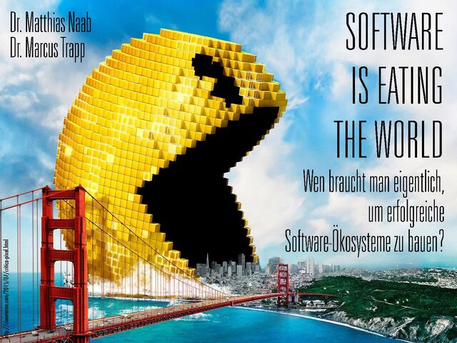 Software revolutioniert fast jede Art von Business durch neuartige Ökosysteme. Die Erstellung erfordert Kompetenzen, die weit über das klassische Systems- und Software-Engineering hinausgehen. Zentrale Herausforderungen sind höhere Komplexität bei kürzerer Time-To-Market, geteilte Verantwortung und Kontrolle über mehrere Unternehmen und Domänen hinweg sowie die immer höher werden Anforderungen an Sicherheit, User Experience, und andere Qualitäten. Wir charakterisieren Softwareökosysteme und zeigen notwendige Kompetenzen, um diese zu bauen.