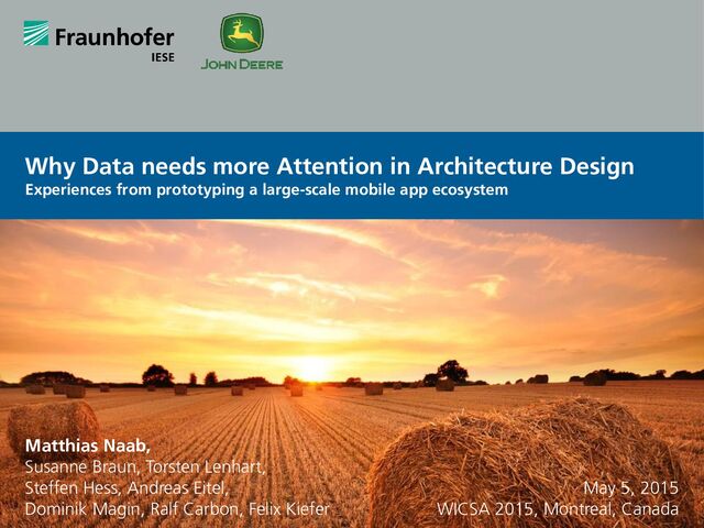 Relate to quality attributes Cooperate with other disciplines Educators More attention to data Provide connection of data modeling and quality attributes Practitioners More attention to data Deliberately decide and document data Share experiences