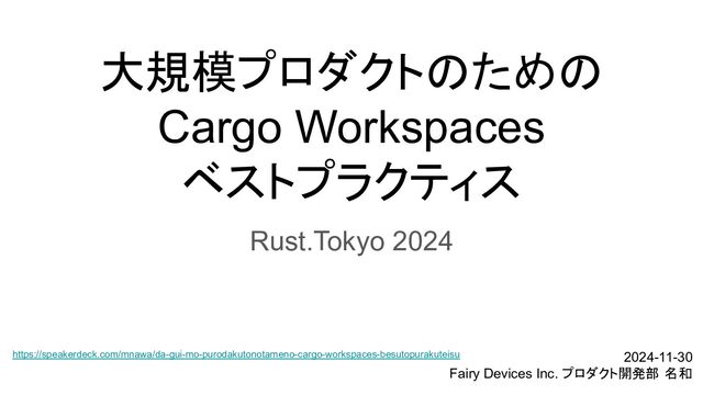 大規模プロダクトのための Cargo Workspaces ベストプラクティス Rust.Tokyo 2024 2024-11-30 Fairy Devices Inc.
