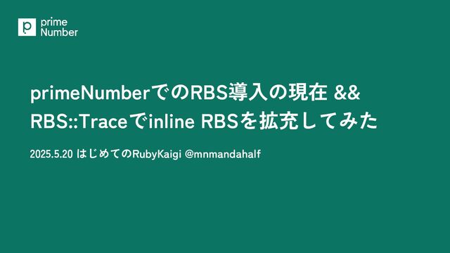 primeNumberでのRBS導入の現在 && RBS::Traceでinline RBSを拡充してみた 2025.5.20 はじめてのRubyKaigi @mnmandahalf