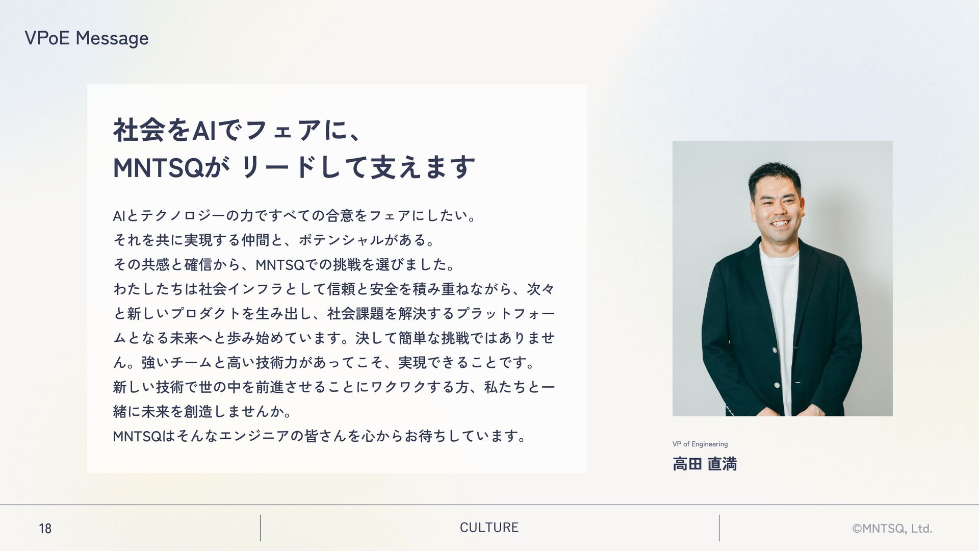 MNTSQ株式会社のエンジニア向け会社紹介資料です。