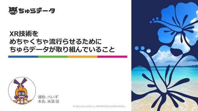 XR技術を めちゃくちゃ流行らせるために ちゅらデータが取り組んでいること © 2022 Chura DATA inc. PROPRIETARY &