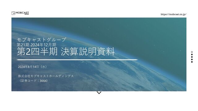 決算説明資料|株式会社モブキャストホールディングス(証券コード:3664) (単位:千円) (※) 四半期純利益は親会社株主に帰属する四半期純利益数値です(▲は損失) 2023年 2024年 2Q 3Q 4Q 1Q 2Q 売上高 861,230 799,665 787,545 919,109 766,052 売上原価 381,070 360,673 311,994 315,098 282,531 売上総利益 480,159 438,992 475,551 604,011 483,520 販管費 555,302 522,929 673,853 521,214 517,419 営業利益(▲は損失) ▲ 75,142 ▲ 83,937 ▲ 198,302 82,797 ▲ 33,898 経常利益(▲は損失) ▲ 78,767 ▲ 89,219 ▲ 202,185 76,264 ▲ 37,216 四半期純利益(※) ▲ 82,907 ▲ 85,359 ▲ 186,085 116,904 ▲ 45,439 総資産 2,913,430 2,813,331 2,495,876 2,407,749 2,286,294 純資産 653,019 562,644 391,923 507,962 467,960