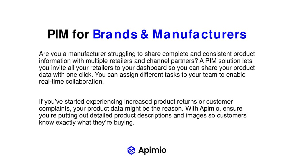 If you’ve started experiencing increased product returns or customer complaints, your product data might be the reason. With Apimio, ensure you’re putting out detailed product descriptions and images so customers know exactly what they’re buying.