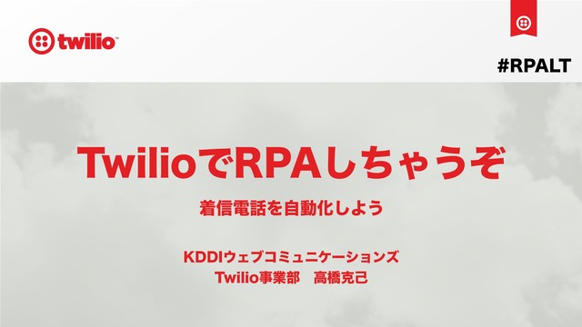 Evangelist Katsumi Takahashi KDDI Web Communications Inc. Twilio Division facebook: katsumi.takahashi Twitter: _katsumi github: mobilebiz qiita: mobilebiz