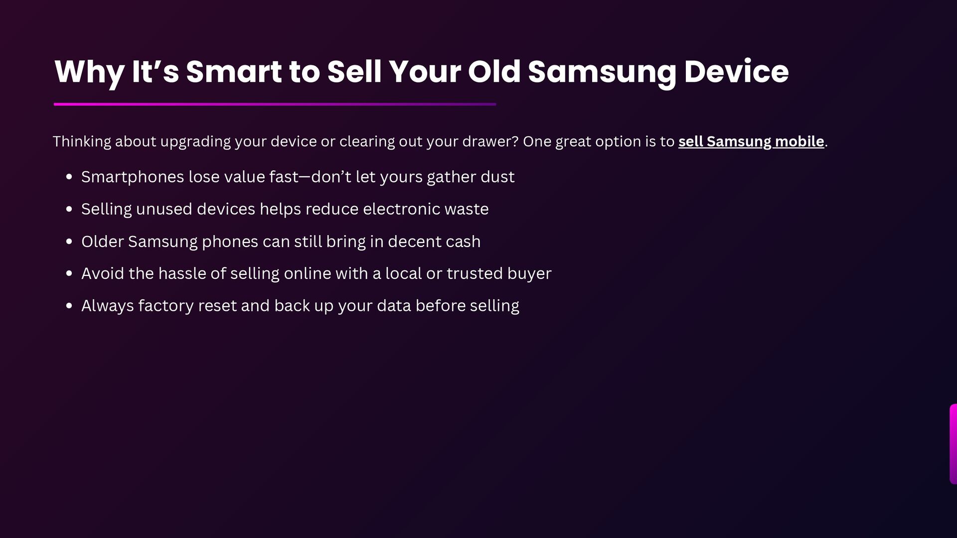 Got an old Samsung lying around? Don’t let it collect dust. Selling your Samsung phone is a smart way to earn quick cash and declutter. Whether gently used or slightly worn, you can trade it in with ease. Learn how to prepare, price, and safely sell your Samsung mobile today.